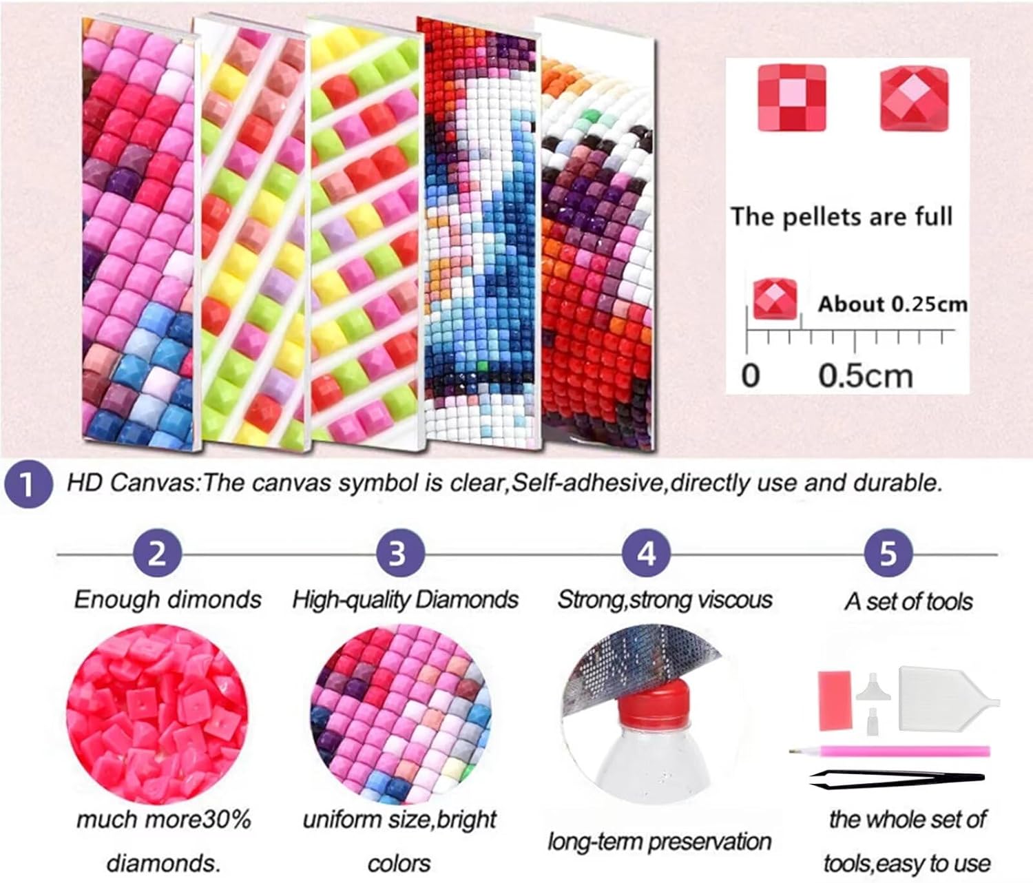 Fasi di produzione del diamond painting fai da te: 1. Trova il sacchetto di diamanti corrispondente in base al numero o alla lettera. 2. Usa la punta della penna per prelevare la quantità appropriata di colla. 3. Versa i diamanti nel vassoio e agita bene. Usa la punta della penna per aspirare il diamante. 4. Incolla tutti i diamanti nella zona corretta. 5. Le pinzette potrebbero fissare il diamante nella posizione corretta. 6. Usa un libro per premere il diamante e farlo aderire più saldamente. La confezione include: 1 x Tela adesiva 1 x Argilla cubica 1 x Pinzetta 1 x Penna per diamanti 1 x Vassoio per diamanti cubici 2 punte di ricambio Un numero sufficiente di diamanti colorati Alcuni sacchetti di ricambio con chiusura a zip Consigli utili: 1. Il prodotto non include una cornice. 2. Si prega di non strappare tutta la pellicola durante la produzione, proteggere la colla da Perdita di viscosità. 3. Le dimensioni sono misurate manualmente, si prega di considerare lievi errori. 13. Il colore può variare leggermente dall'immagine online a causa delle impostazioni del monitor. Si prega di fare riferimento al prodotto reale. Grazie per la comprensione.