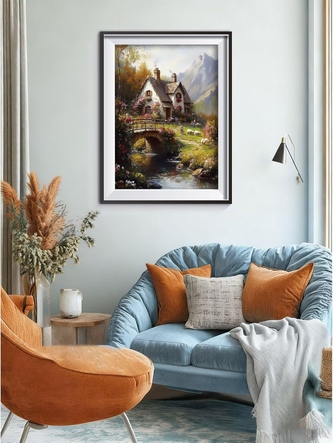 Diamond Painting Foresta Case 30x40cm 5D Diamond Painting Adulti Diamantini Crystal Art Creativi Kit, Ricamo Artigianale Kit, Autunnali Halloween Decorazioni Pareti Pittura, Regalo di Natale A-j-382