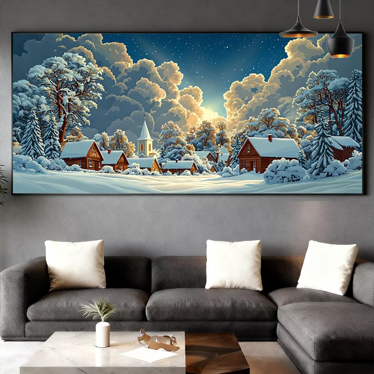 Diamond Painting Grandi Dimensioni 100x40cm, Paesaggio Diamond Painting Kit Completo, Disegni con Perline da Attaccare Fai Da Te per Adulti, Pittura Diamante Kit per Decorazioni Casa (Inverno) Q-25