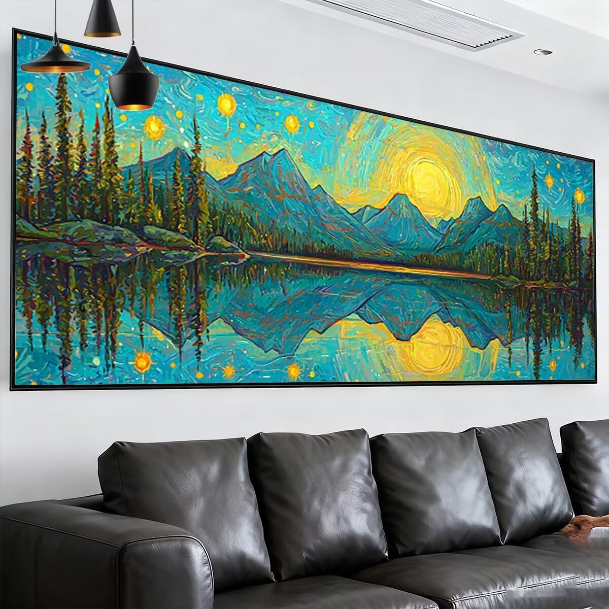 Diamond Painting Grandi Dimensioni 100x40cm, Starry Night Diamond Painting Kit Completo, Disegni con Perline da Attaccare Fai Da Te per Adulti, Pittura Diamante Kit Decorazioni Casa (Paesaggio) R-77