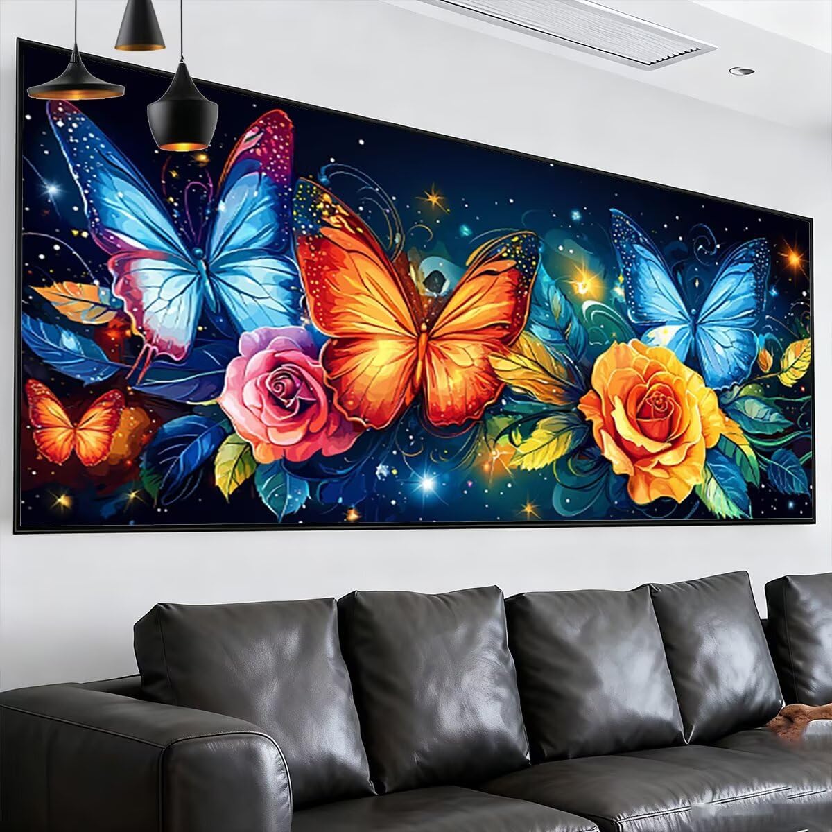 Diamond Painting Grandi Dimensioni 130x50cm, Farfalla Diamond Painting Kit Completo, Disegni con Perline da Attaccare Fai Da Te per Adulti, Pittura Diamante Kit per Decorazioni Casa (Fiori) Motivo R-3