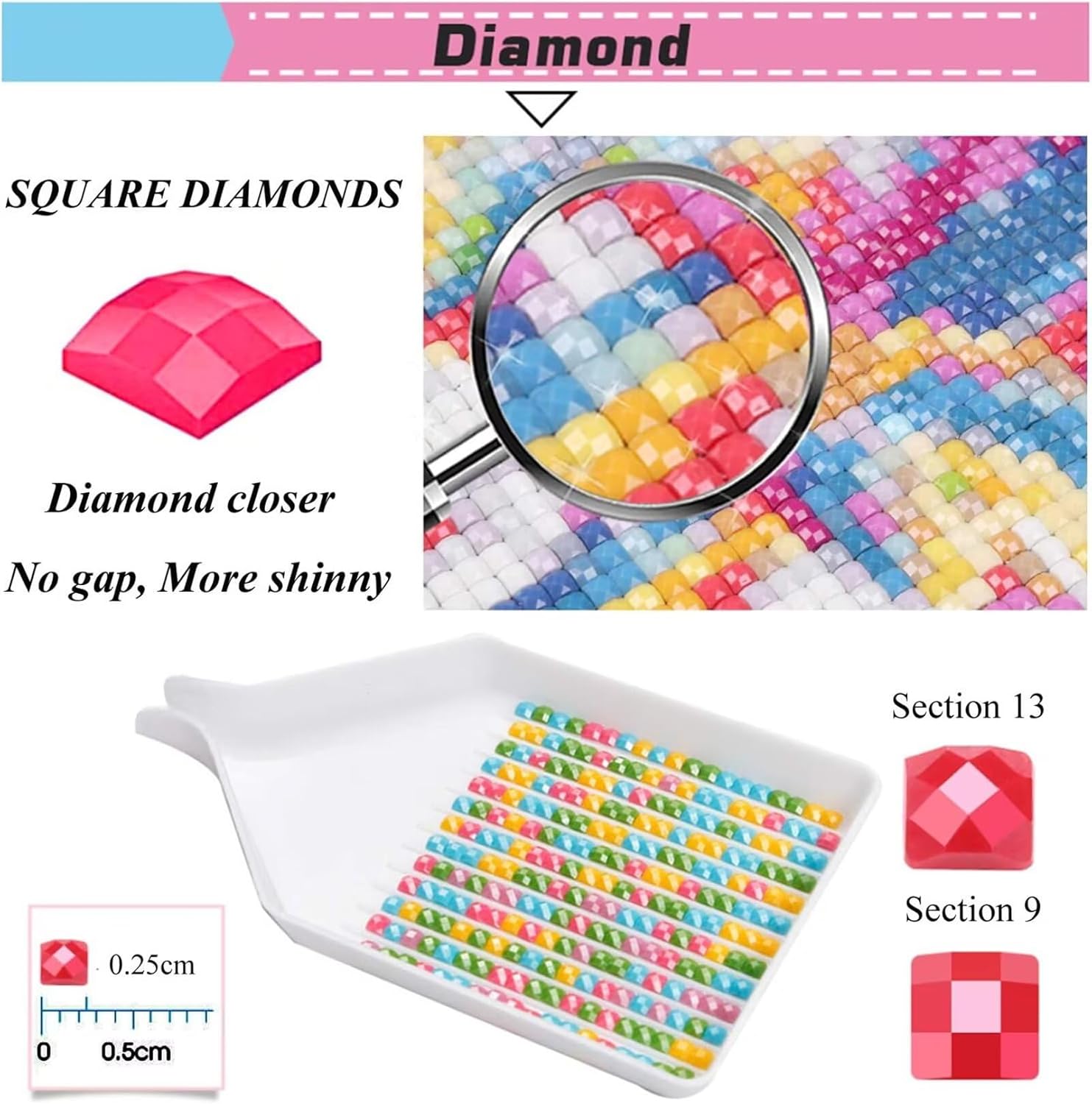 【DIAMOND PAINTING COLORATA】: I diamanti inclusi nei kit di pittura a diamante 5D sono tagliati con precisione per uniformità, brillando alla luce. La nostra pittura a diamante contiene il 30% di diamanti in più, garantendo una copertura più ricca e una finitura più abbagliante 【KIT DI PITTURA A DIAMANTE PER ADULTI PACCHETTO COMPLETO】Gli accessori e gli strumenti per la pittura a diamante sono inclusi con tutto il necessario! (Nessun acquisto aggiuntivo richiesto). Tela HD, perline di strass colorati, penna a punta diamantata, cera per pittura a diamante, sacchetti sigillati, vassoi per pittura a diamante. La pittura a diamante di grandi dimensioni è dotata di diversi set di strumenti 【TELA PER DIPINTO A DIAMANTE DI ALTA QUALITÀ】: I kit per pittura a diamante sono dotati di simboli di numerazione chiari e istruzioni facili da seguire con colori vivaci. La tela è dotata di uno sfondo molto adesivo che fa aderire saldamente i diamanti alla tela, e può essere conservata a lungo 【SPLENDIDO ARREDAMENTO PER LA CASA E REGALO PENSATO】: Trasforma la tua parete con un'arte di diamanti radiosa, una volta completata, la tua arte di diamanti si trasforma in uno splendido pezzo di decorazione murale. Non importa se per compleanno, Natale, San Valentino, ecc., è un regalo creativo e rilassante per amici, familiari o per te stesso 【SERVIZIO POST-VENDITA】: Attribuiamo grande importanza alla qualità dei nostri prodotti e all'esperienza del cliente. Se il kit consegnato dovesse presentare diamanti o accessori mancanti, vi preghiamo di comunicarcelo immediatamente. Dopo aver ricevuto le informazioni, provvederemo a ristampare il dipinto con diamanti per voi