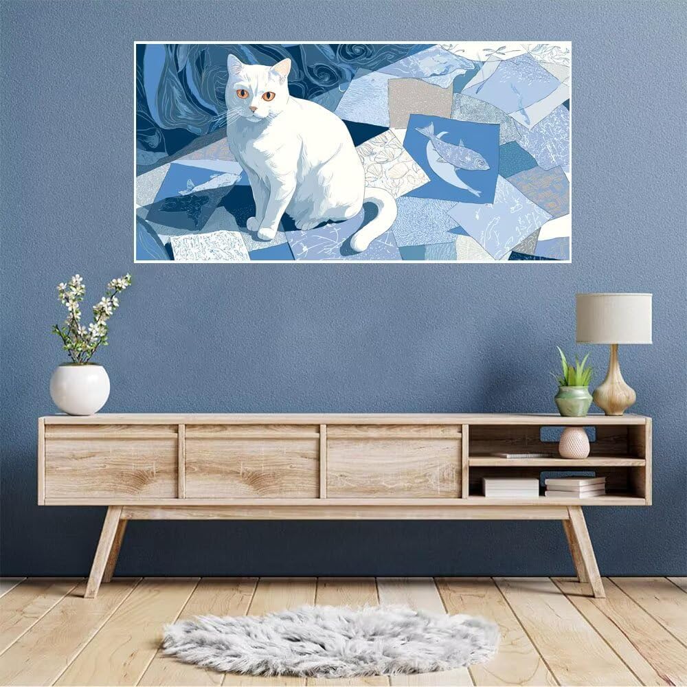 Diamond Painting Kit Completo Le chat, Quadri Diamond Painting Adulti Le poisson, Diamantini Crystal Art Bambini, Pittura Diamante Passatempo Per Adulti, Adatto Decorazione Della Casa 80x160cm g-579