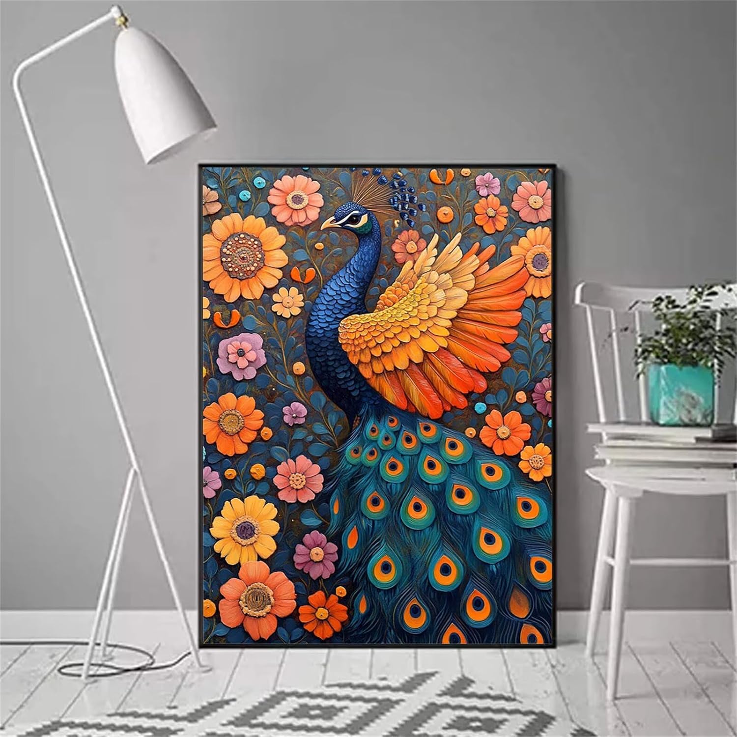 Diamond Painting Kit Completo, Pavone Diamond Painting Bambini, Diamantini Crystal Art Fiore Quadri con Perline Passatempo per Adulti Pittura Diamante per la Decorazione Domestica 70x100 cm H-5838
