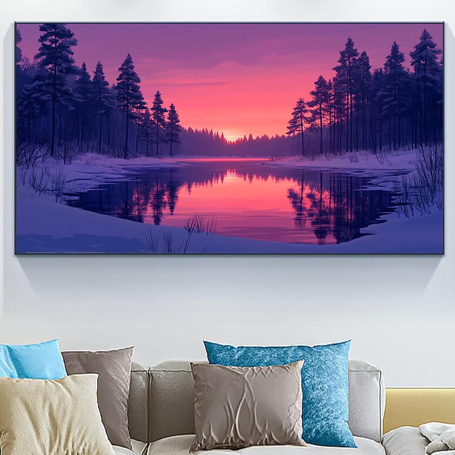 Diamond Painting Lago Foresta 40x80cm Diamond Painting Adulti Bambina 5D Diamantini Crystal Art Kit Completo Adulti, Pittura Diamante Kit per Pittura Manuale, Autunno Decorazioni Casa Pareti E-352