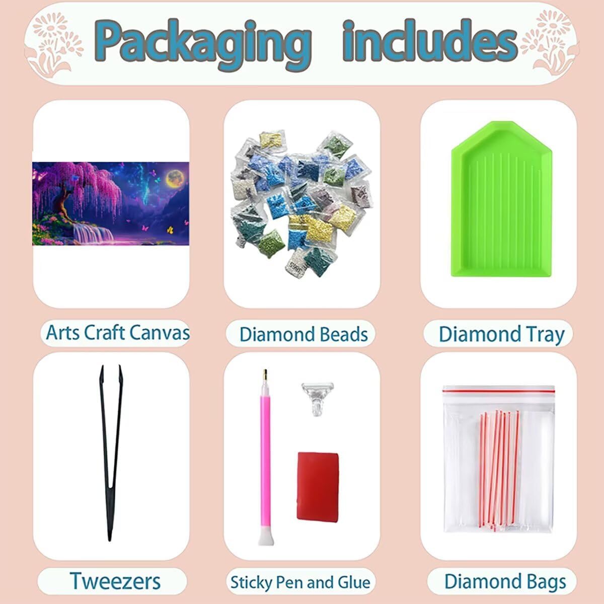 DIAMOND PAINTING SIZE AND PACK : Diamond painting sogno è size 50x100cm, include 1 tela ad alta definizione, 1 penna a diamante, 1 vassoio a diamante cubico, 1 argilla adesiva, 5 sacchetti sigillati, il set contiene abbastanza diamanti quadrati colorati (un extra del 30%) e tutti gli strumenti necessari per realizzare diamond painting TELA PER DIAMOND PAINTING HD : Diamond painting foresta tela utilizza una stampa ad alta definizione, garantendo che ogni numero o lettera sia chiaramente identificabile, trovarli facilmente, tela impermeabile e dalla consistenza uniforme, con una copertura superiore in plastica autoadesiva per mantenere la pittura appiccicosa e i diamond al sicuro COLORATA FULL DIAMOND PAINTING : Diamanti nei nostri kit diamond painting con trapano completo sono riccamente colorati e comprendono l'intero spettro di tonalità necessarie per l'opera d'arte. Realizzati con materiali di alta qualità, questi diamanti mostrano brillantezza, lucentezza e resistenza allo sbiadimento. La luce brillante riflessa dalle loro superfici anima l'intero dipinto DIAMOND PAINTING SOGNO : Diamond painting foresta, qui est un kit de peinture au diamant adapté aux adultes, nos kits de diamond painting pour adultes sont disponibles dans une variété de styles, y compris des paysages, des animaux et plus encore, pour répondre à différents besoins personnalisés (vous pouvez rechercher des Lioauanh diamond painting) EXCELLENT SERVICE APRÈS-VENTE : Après réception du kit diamond painting, veuillez d'abord vérifier la diamond et les accessoires. Si un diamant est manquant ou endommagé, contactez-nous à temps et nous vous fournirons une solution sous 24 heures (L'image indique la taille maximale, veuillez acheter la taille souhaitée)