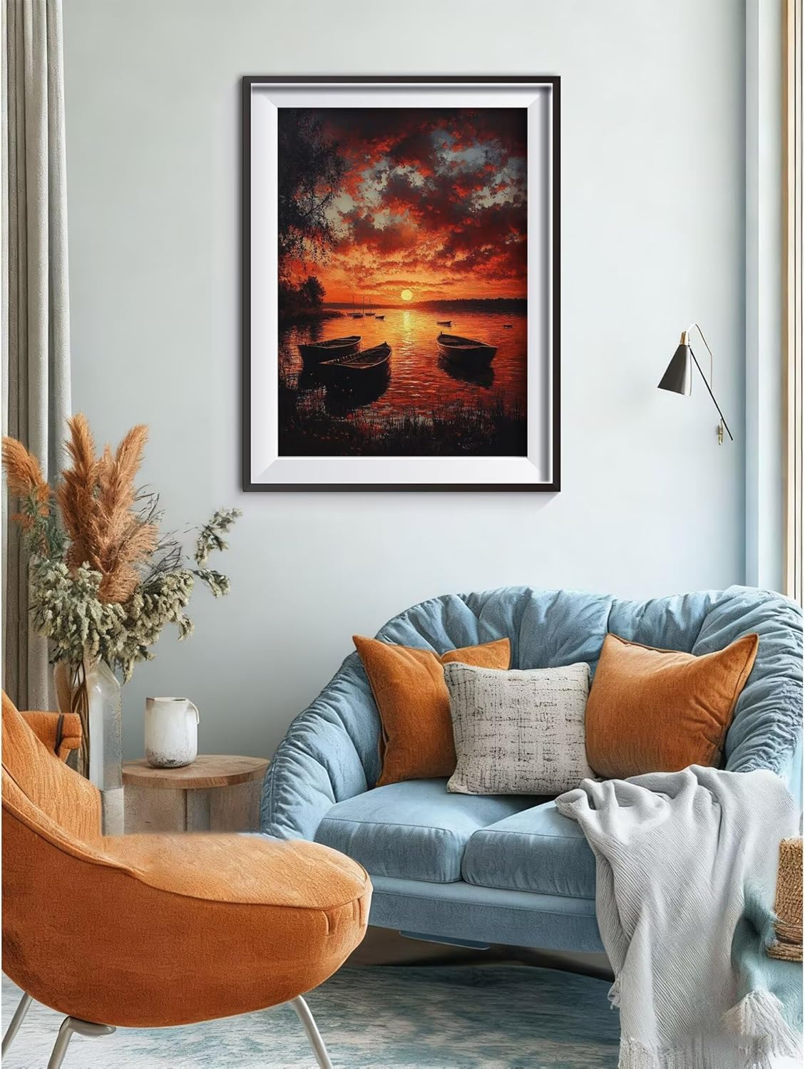 Diamond Painting Sole Barca 100x135cm 5D Diamond Painting Adulti Diamantini Crystal Art Creativi Kit, Ricamo Artigianale Kit, Autunnali Halloween Decorazioni Pareti Pittura, Regalo di Natale A-j-350