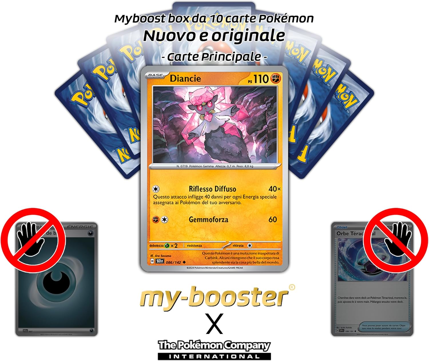 Trova i tuoi Pokémon preferiti nel tuo negozio amazon.fr/my-booster Le scatole Ultraboost e Myboost contengono la carta principale nella parte anteriore delle scatole + 9 carte Pokémon aggiuntive Nuove carte originali certificate "The Pokemon Company" Nessuna carta allenatore/energia - Nessuna carta duplicata Alcune carte aggiuntive incluse potrebbero far parte di una serie Pokémon diversa dalla serie della carta principale in questa scatola.