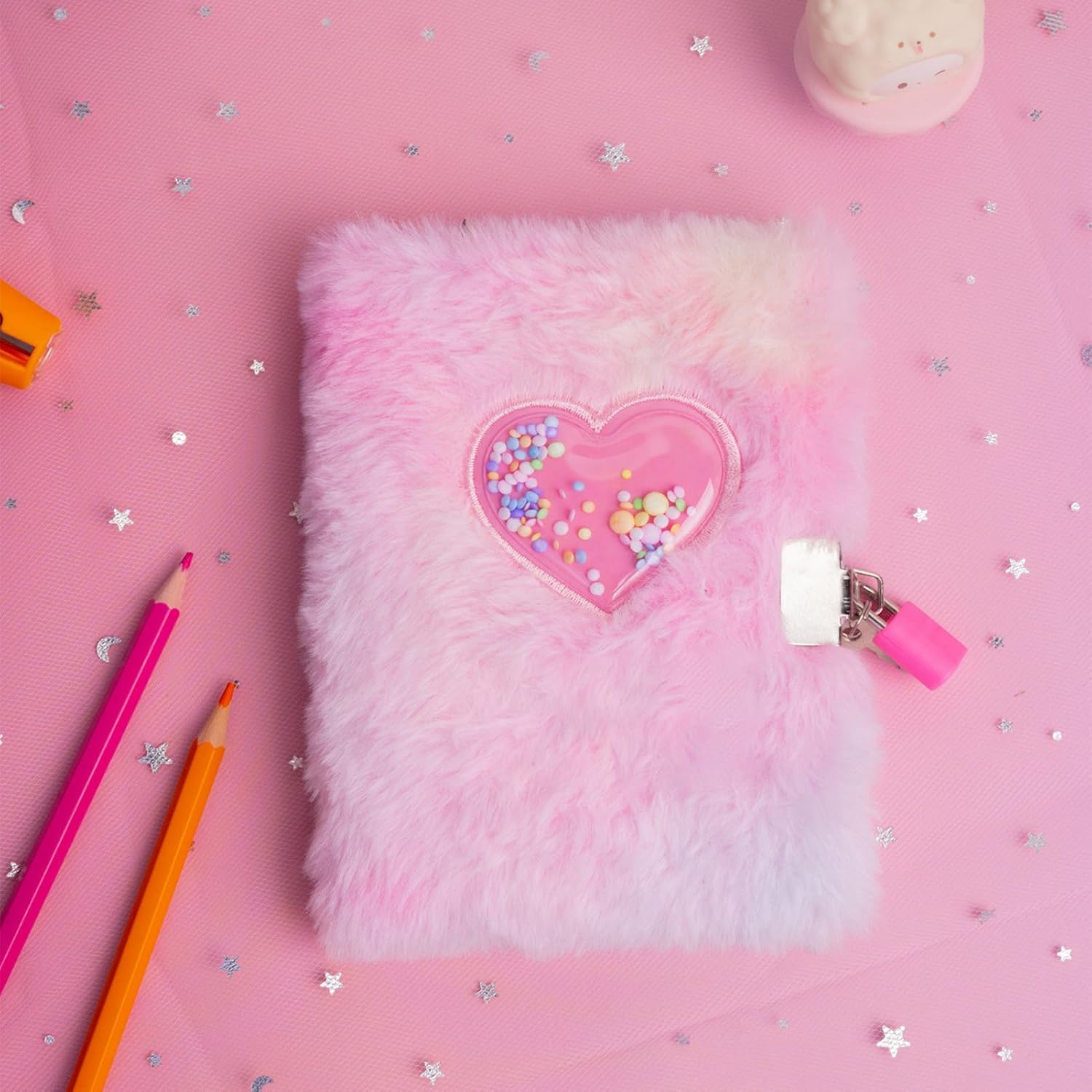 Questo diario a forma di cuore presenta una soffice copertina in peluche e un design a cuore scintillante che piace alle ragazze che amano accessori eleganti e comodi per l'inserimento nel diario di tutti i giorni Include un lucchetto e una chiave sicuri per tenere al sicuro pensieri, sogni e segreti personali e aiutare i bambini a sviluppare espressioni emotive e abitudini di scrittura Dimensioni perfette per le mani dei più piccoli, entra facilmente nello zaino o nei cassetti del comodino, rendendolo ideale per la scuola, i pigiama party o i momenti tranquilli a casa L'interno è dotato di pagine a righe per scrivere, scarabocchiare o disegnare facilmente, incoraggia la narrazione creativa e l'autoriflessione in un formato divertente. Regalo ideale per compleanno o vacanze per ragazze dai 6 ai 12 anni. Questo diario del cuore incoraggia la privacy, l'immaginazione e la consapevolezza in modo schermo e personale