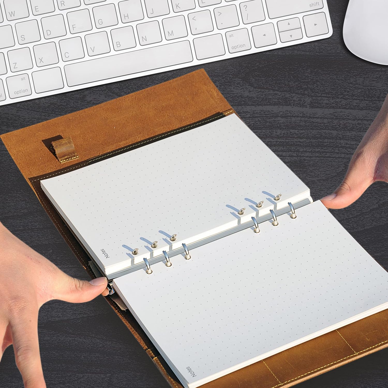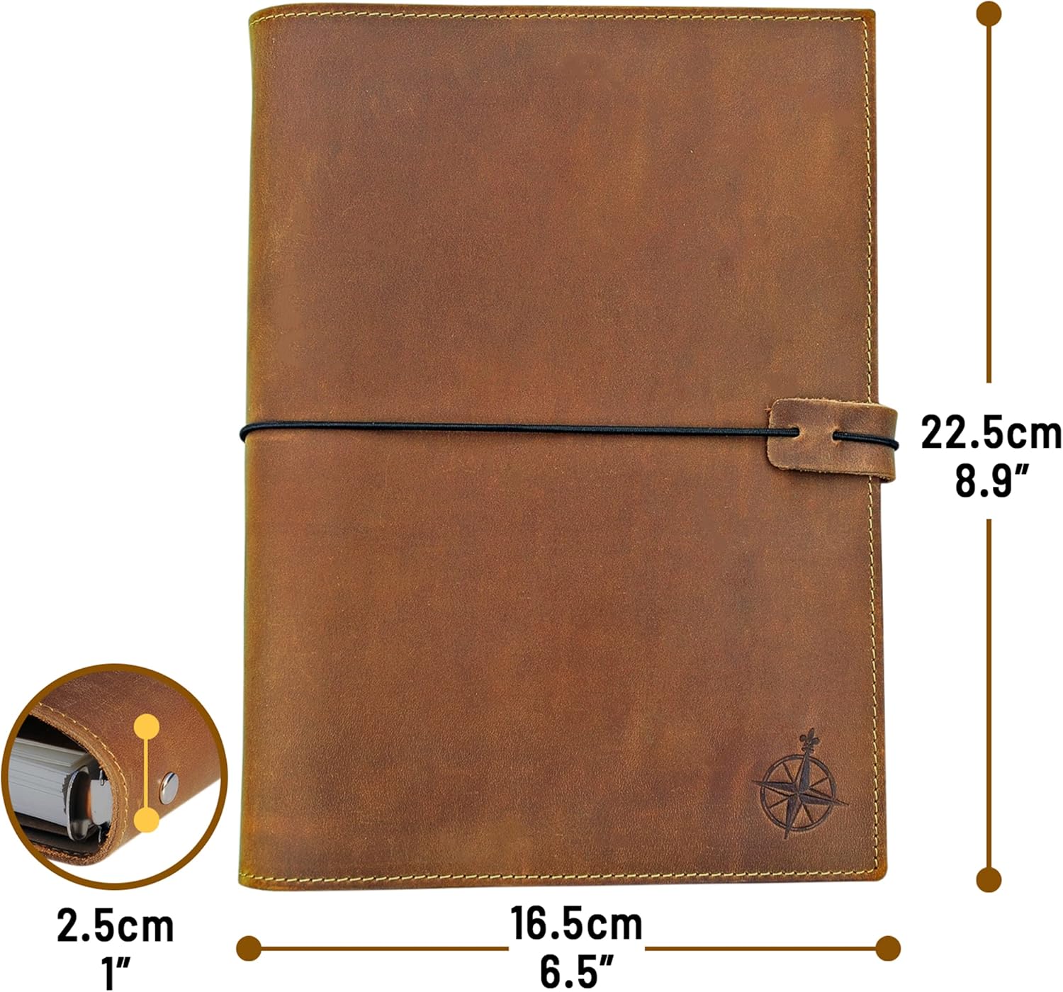 Notebook splendidamente realizzato a mano, in pelle pieno fiore spessa al 100% di alta qualità, dall'aspetto, dall'odore e dalla sensazione meravigliosi. La pelle di bufalo conciata al vegetale invecchierà con carattere: un ricordo permanente dei tuoi pensieri e delle tue espressioni. Carta fatta a mano - Carta con bordo vintage - 200 pagine di cotone riciclato bianco sporco da 125 g/m², privo di acidi, sostanze chimiche e alberi. Questa bella carta spessa, bianca e senza fodera previene le sbavature ed è fantastica. Ricaricabile rispettoso dell'ambiente – Compatibile con agende rilegate da 3,75" x 6,75"/17 x 9,5 cm (95 mm x 170 mm). La dimensione del foro è 19-19-51-19-19 mm. Elegante oggetto antico: la carta di cotone vecchio stile combinata con la bellezza della pelle invecchiata, cucita a mano da artigiani, crea un ricordo che custodirai per sempre. Un grande regalo per gli uomini, le donne e i Wiccan nella tua vita! Disponibile su Amazon anche nella versione a righe (b09753xbqv), con pagine bruciate (b0979vrrsp) e in set regalo (b07ysxc8yg).
