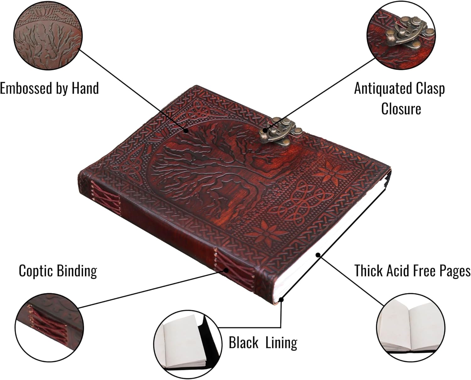 ✔ UNICO E BEN FATTO: Questo antico diario è realizzato in vera pelle di capra, conciata tradizionalmente con oli speciali, che emanano un profumo di vera pelle, creando un taccuino dallo stile retrò-vintage. Realizzati a mano, i nostri diari variano nell'aspetto e nel colore, creando un oggetto unico e mai uguale. Un ricordo prezioso per i tuoi pensieri, progetti e idee. Ideale per un Libro delle Ombre, un grimorio, un grimorio o semplicemente come quaderno. ✔ FASCINO RUSTICO: una copertina in pelle splendidamente goffrata e una rilegatura in pelle copta cucita a mano tengono le pagine saldamente in posizione. Questo diario antico presenta una classica chiusura con coulisse in pelle che mantiene il diario chiuso e funge anche da pratico segnalibro. ✔ SENZA BORDI: 100 fogli/200 pagine (fronte e retro) di carta vergine bianca/crema spessa da 120 g/m² per una scrittura più elegante. Fatto a mano con carta riciclata priva di acidi! (Ricaricabile: è richiesta abilità di cucito). ✔ VERSATILE: adatto per la maggior parte delle penne (pennarelli, pennarelli, penne gel, penne a sfera, penne colorate), anche gli inchiostri per penne stilografiche più umidi... per disegnare mappe mentali, abbozzare idee o prendere appunti liberamente sulle pagine. ✔ DIMENSIONE IDEALE E MOLTI USI: il diario misura 17,5 cm di lunghezza x 12,5 cm di larghezza x 3,5 cm di profondità, rendendolo facile da scrivere, disegnare o fare schizzi ed è compatto da portare in borsa. Ideale per quaderni di artisti alternativi, album fotografici, appunti di viaggio, diari di caccia, quaderni di poesie, diari, pianificatori alimentari, quaderni, album fotografici e diari.