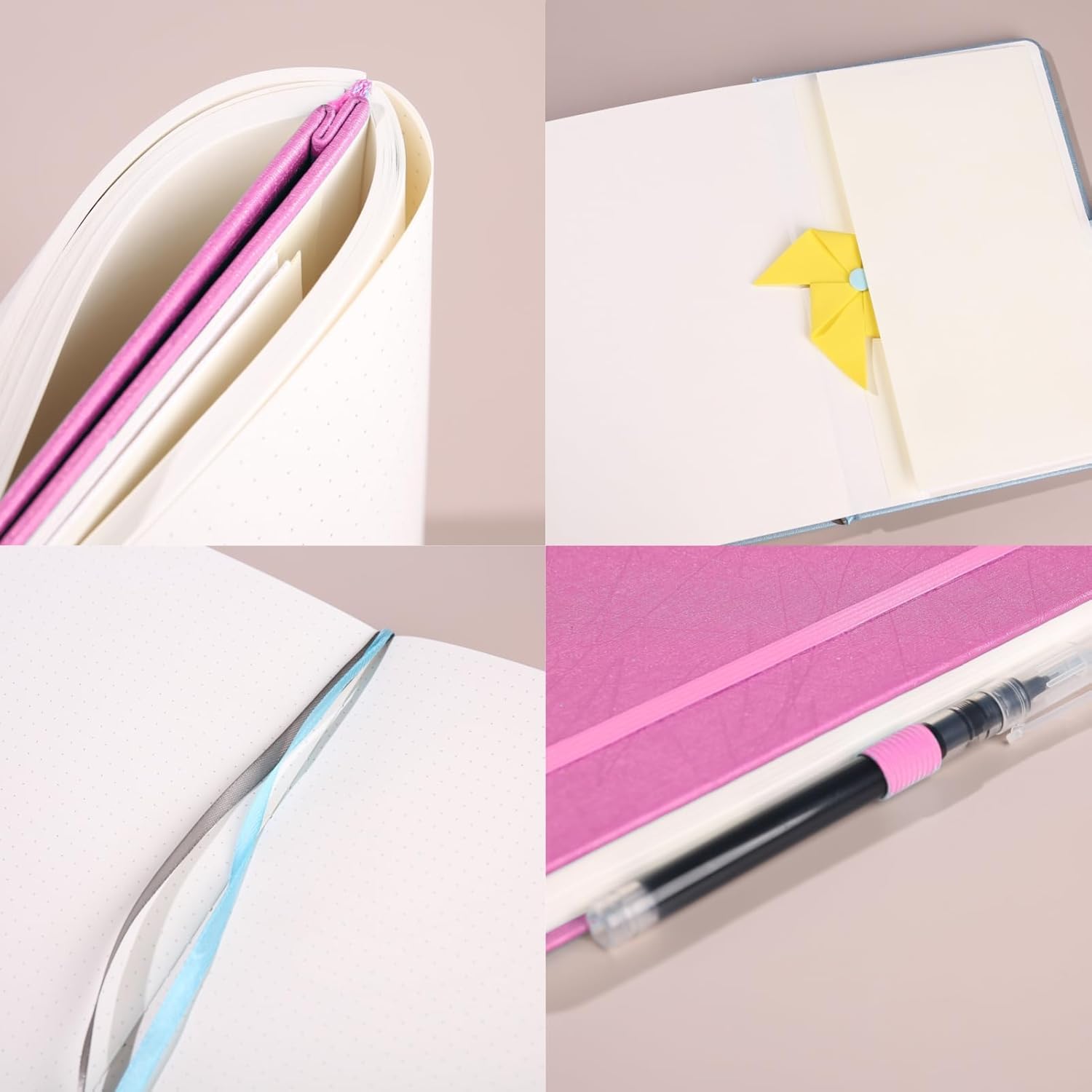 Taccuino punteggiato A5 premium: taccuino punteggiato da 160 pagine, questo diario con copertina rigida A5 è comodo al tatto, la trama a forma di linea sulla copertina lo rende unico e bello. Questo taccuino viene fornito con carta liscia color avorio, che offre una buona sensazione di scrittura. Carta spessa 120 g/m² e dimensioni adeguate: lo spessore della carta a pois è 120 g/m², con 160 pagine a pois, distanza tra i punti 5 mm, la qualità della carta è superiore e più spessa rispetto alla maggior parte degli altri quaderni, può contenere la maggior parte delle penne. Non è necessario preoccuparsi di sbavature o immagini fantasma. Pagine color avorio per proteggere gli occhi dai riflessi della luce. Il nostro diario a punti in formato A5 è perfetto per la portabilità, adatto per diario, pianificazione, appunti, studio, grafici e registrazioni della vita quotidiana. Caratteristiche di questo diario: diario a punti con tasca interna, portapenne, copertina in pelle vegana di alta qualità, elastico, 2 segnalibri, distensione a 180°, ideale per l'uso quotidiano, perfetto per prendere appunti, scrivere diario o disegnare qualunque cosa tu voglia con la tua ispirazione. COPERTINA UNICA ED ELEGANTE: la nostra copertina per diario a pois è realizzata in pelle vegana di prima qualità, molto comoda al tatto. La copertina di questo taccuino è unica. Quaderno a punti per te: questo diario a punti ha un aspetto attraente e unico, ci sono molti bellissimi colori tra cui scegliere e questo diario è adatto a tutti i gruppi, sia per uomini che donne, bambini o adulti. Carta puntinata di alta qualità e abbastanza spessa da 120 g/m². Nel complesso, questo diario a pois ha un ottimo rapporto qualità-prezzo e sarà una buona scelta per te.