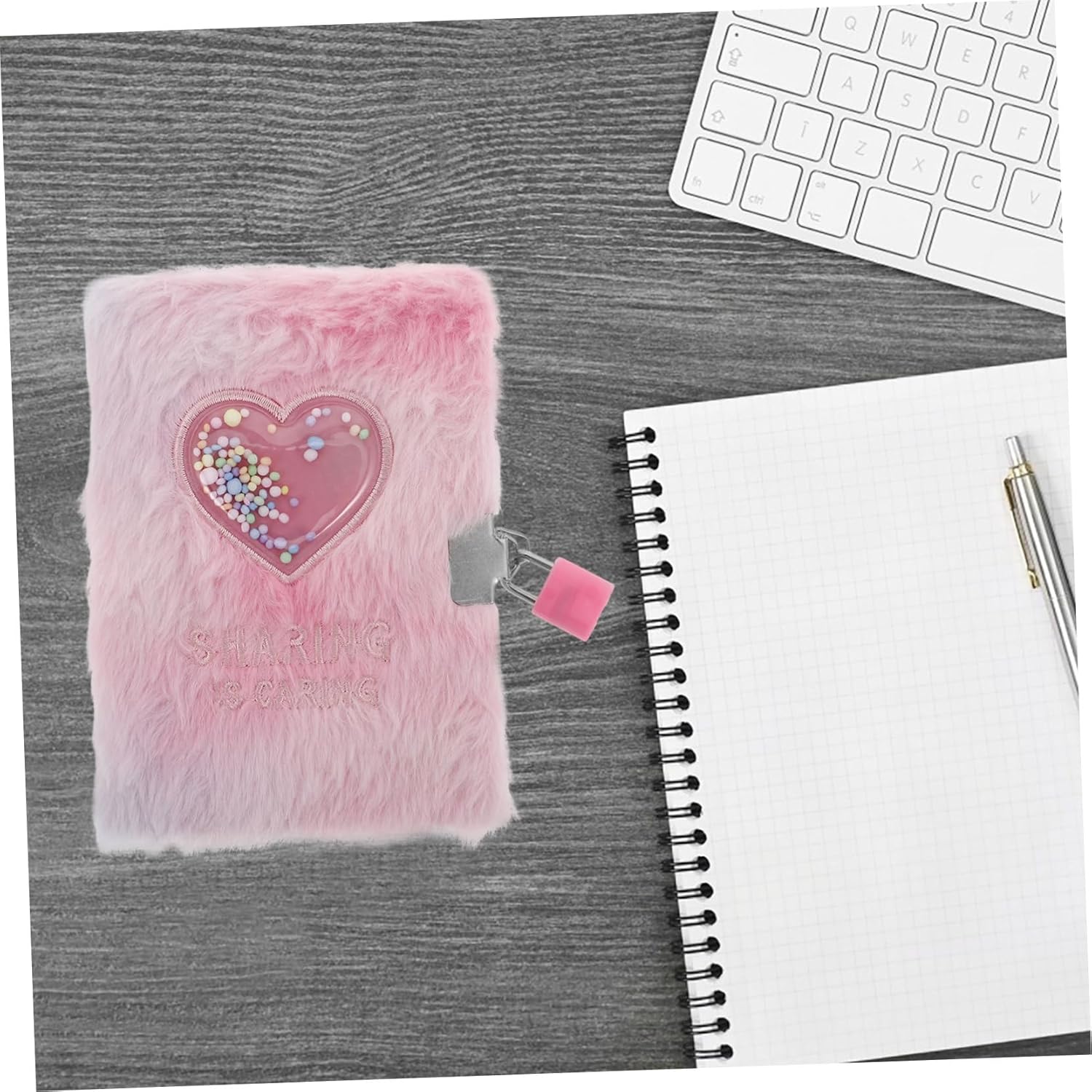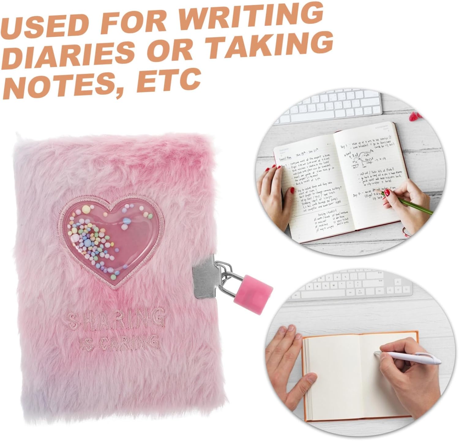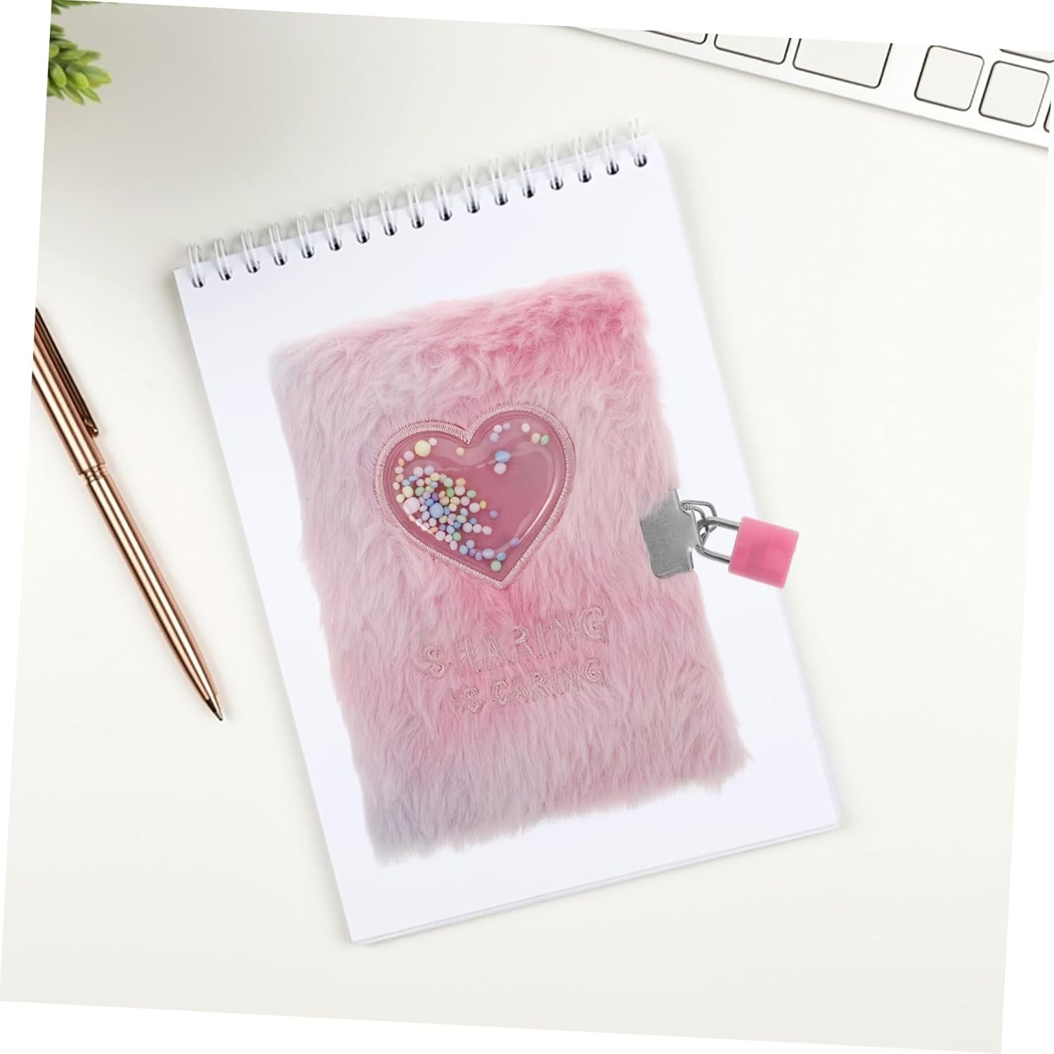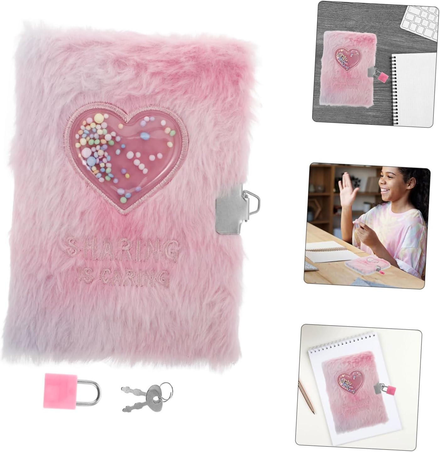 MULTIUSO - Questo taccuino è adatto a una varietà di usi, tra cui come aiuto per lo studio, diario personale o come premio speciale per i risultati degli studenti. Quaderno con serratura, diario bambini con serratura Portatile e pratico: grazie al formato A6, è facile da trasportare ed è adatto agli studenti che necessitano di un quaderno compatto e pratico per la scuola o per uso personale. Quaderno con serratura, diario privato per ragazze Design a cuore: il bellissimo motivo a cuore migliora l'estetica del quaderno, rendendolo un regalo adorabile per le ragazze che amano gli oggetti carini e decorativi. Diario con serratura, taccuino soffice Appeal morbido: la copertina morbida e soffice con un simpatico design a cartone animato rende questo taccuino irresistibile per le ragazze e porta un elemento divertente nella loro vita quotidiana. Quaderno per ragazze, diario in pelliccia sintetica con lucchetto Morbido e carino: la copertina morbida e morbida con un adorabile design a forma di cartone animato rende questo quaderno uno dei preferiti tra le ragazze e aggiunge un tocco di divertimento alla tua esperienza di scrittura. materiale scolastico carino, diario soffice con lucchetto