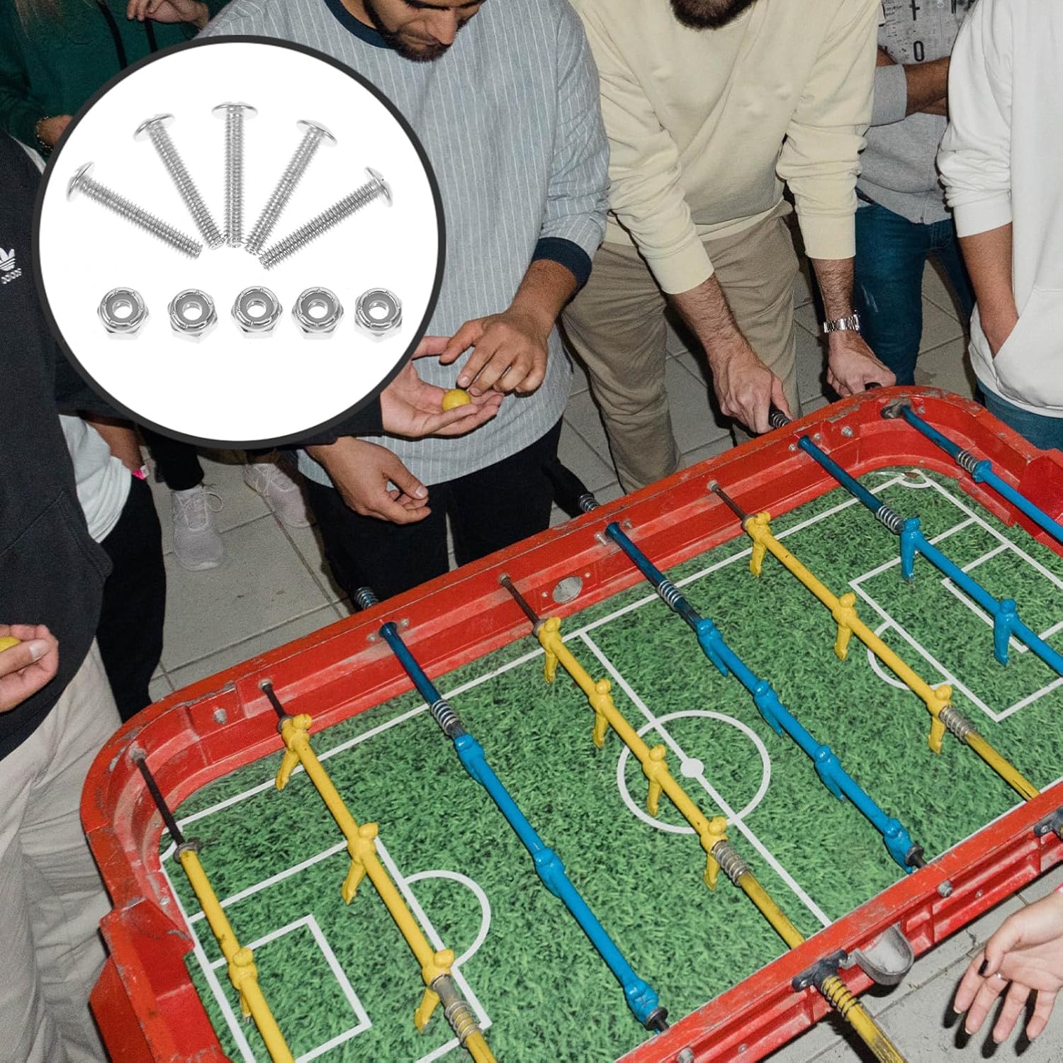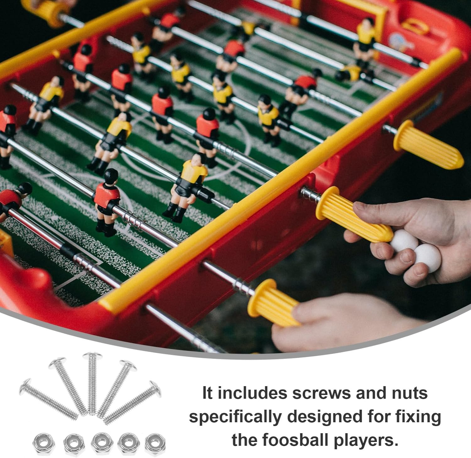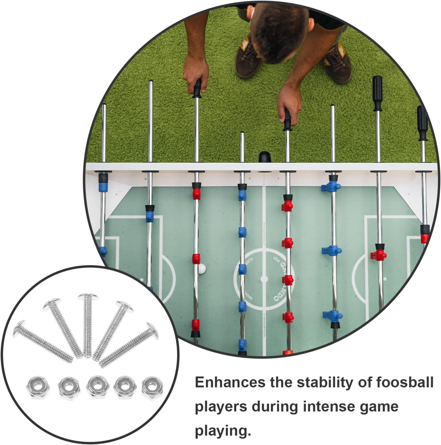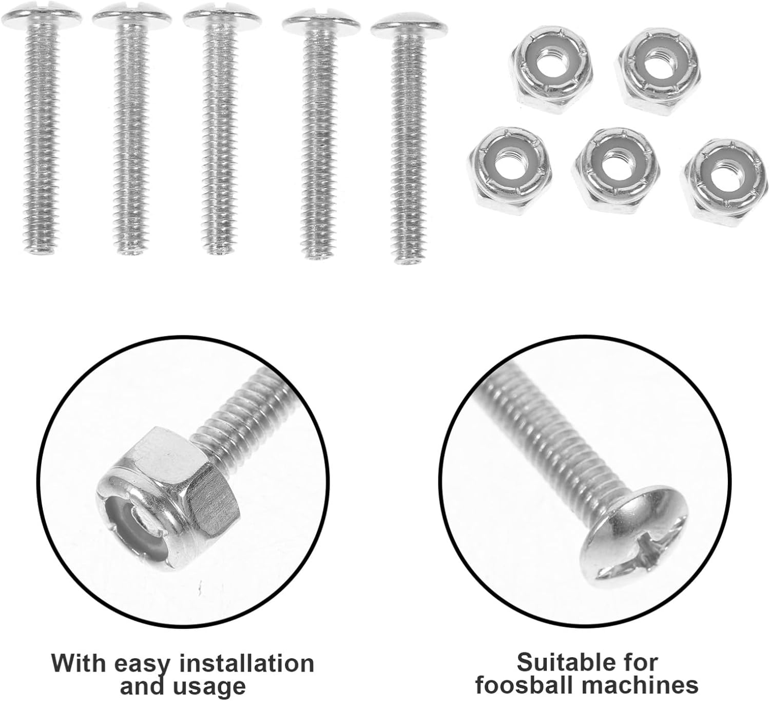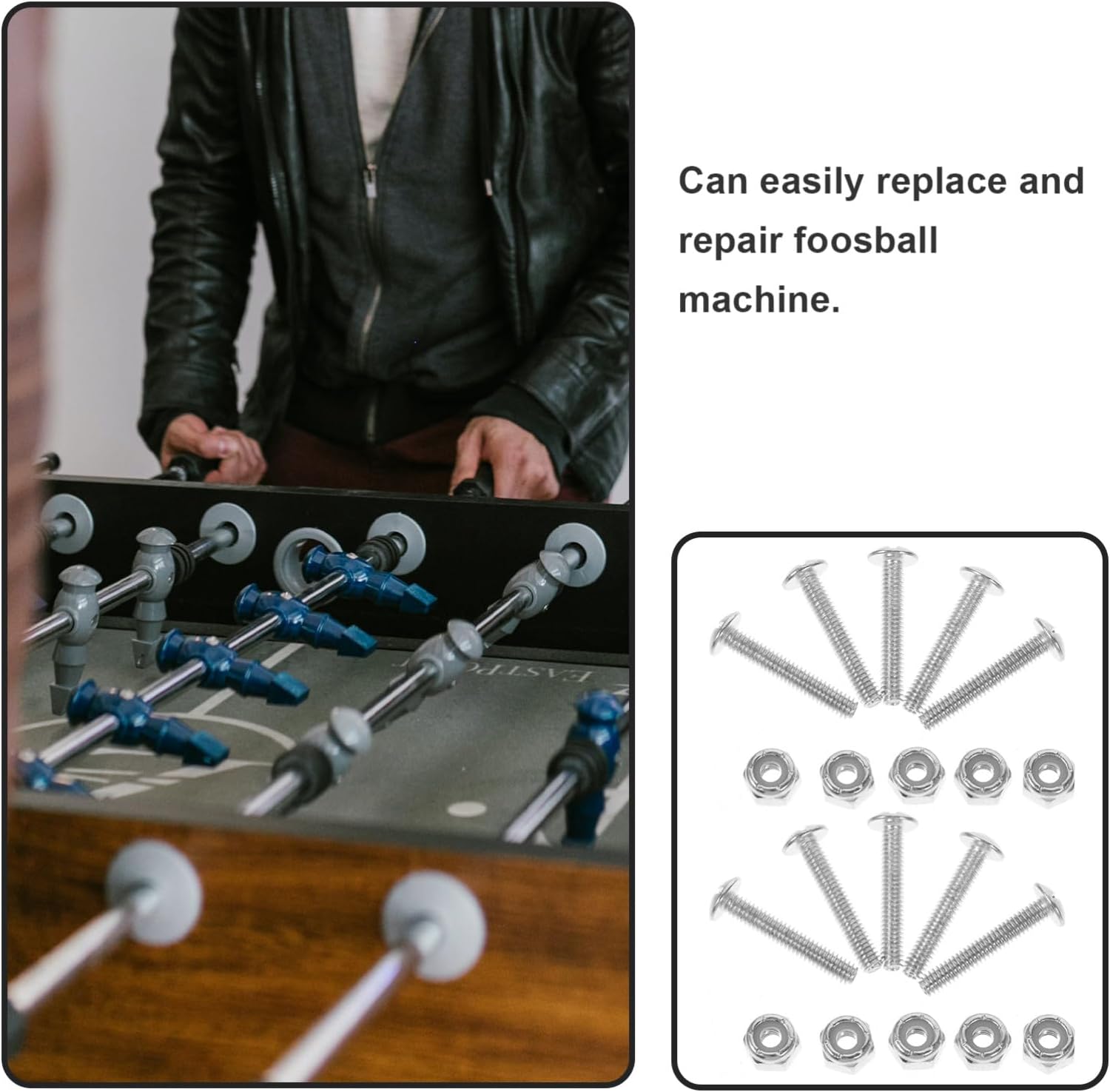 Hardware per biliardino - Aggiorna il tuo tavolo da biliardino con questo set essenziale di viti e dadi per garantire un fissaggio sicuro e stabile dei giocatori di biliardino e dell'hardware del biliardino Viti di fissaggio per biliardino - Con una vestibilità sicura, queste viti e dadi prevengono qualsiasi oscillazione o instabilità durante, garantendo un'esperienza fluida e confortevole per tutti i giocatori, accessori per biliardino Dado e vite per giocatori di biliardino - Si adatta ai giocatori di biliardino, garantisce un fissaggio sicuro e può facilmente sostituire e riparare le macchine da biliardino e le viti del biliardino Strumenti per la stabilità del tavolo: migliora l'esperienza del biliardino con questo set di viti e dadi che fissano saldamente i tuoi giocatori al tuo biliardino per garantire un'esperienza di gioco fluida e ininterrotta. Parti per calcio balilla Accessori per calcio balilla - Il design preciso di questo set di viti e dadi garantisce una buona vestibilità e un gameplay preciso per una migliore esperienza di calcio balilla, viti di montaggio per calcio balilla