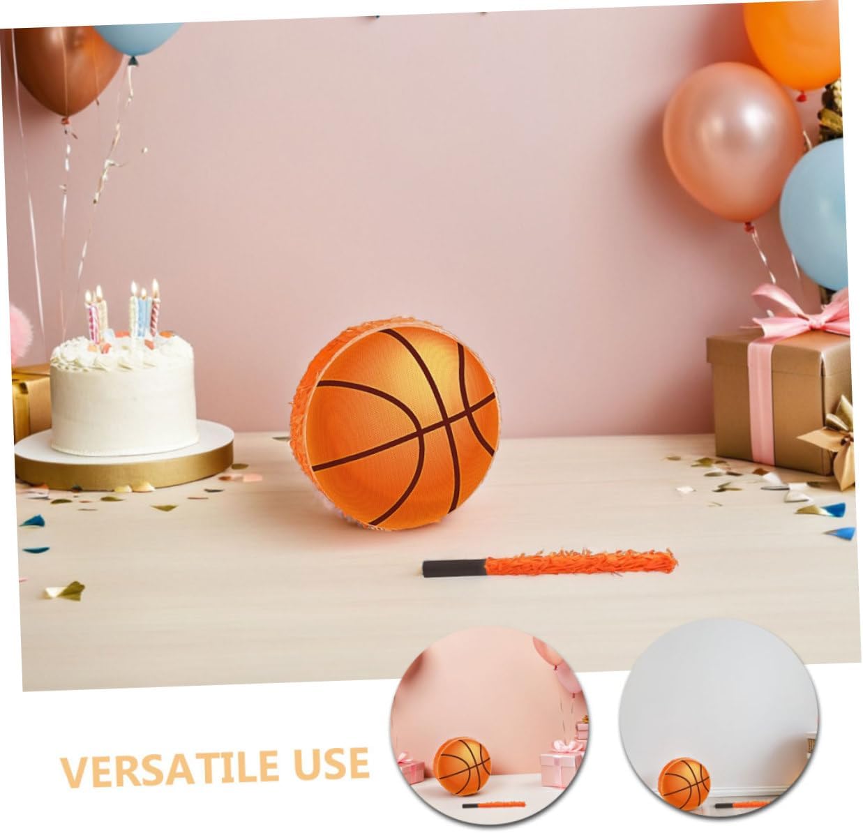 PER OGNI OCCASIONE: Ideale per feste a tema sportivo, feste di compleanno, eventi scolastici e altro ancora. Può anche servire come pezzo decorativo o supporto fotografico e aggiungere fascino a qualsiasi ambiente. Piñata di compleanno, accessori fotografici per feste di basket. Costruzione premium: questa piñata è realizzata in cartone resistente e decorata con carta crespa brillante. È durevole e manterrà il suo aspetto vivace durante tutto l'evento. Piñata a sfera per feste di compleanno, decorazioni per feste di basket Divertente e interattivo: viene fornito con una benda e un bastone per goderti il tradizionale gioco della piñata, aggiungendo un elemento emozionante a qualsiasi festa. Decorazione di compleanno per bambini, decorazione di compleanno di basket Versatile e divertente: adatta a una varietà di eventi, tra cui feste a tema sportivo, compleanni ed eventi scolastici. Può essere utilizzata anche come elemento decorativo o supporto fotografico, gioco di basket o forniture per feste a tema basket. Materiali: realizzata in cartone resistente e decorata con vivace carta crespa, questa piñata è durevole e manterrà il suo aspetto luminoso durante tutto l'evento, partite di basket, giochi di piñata per feste a tema sportivo.
