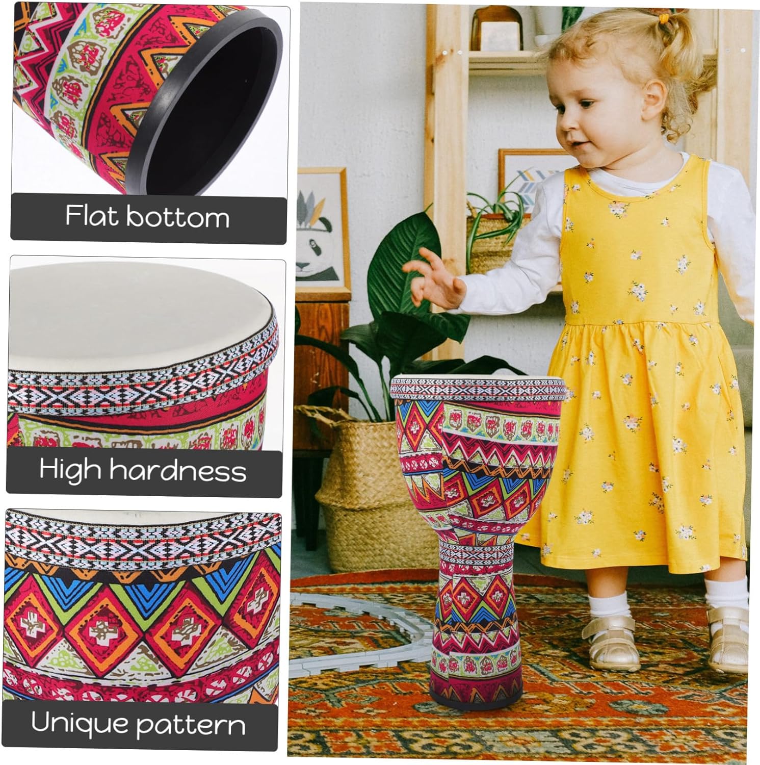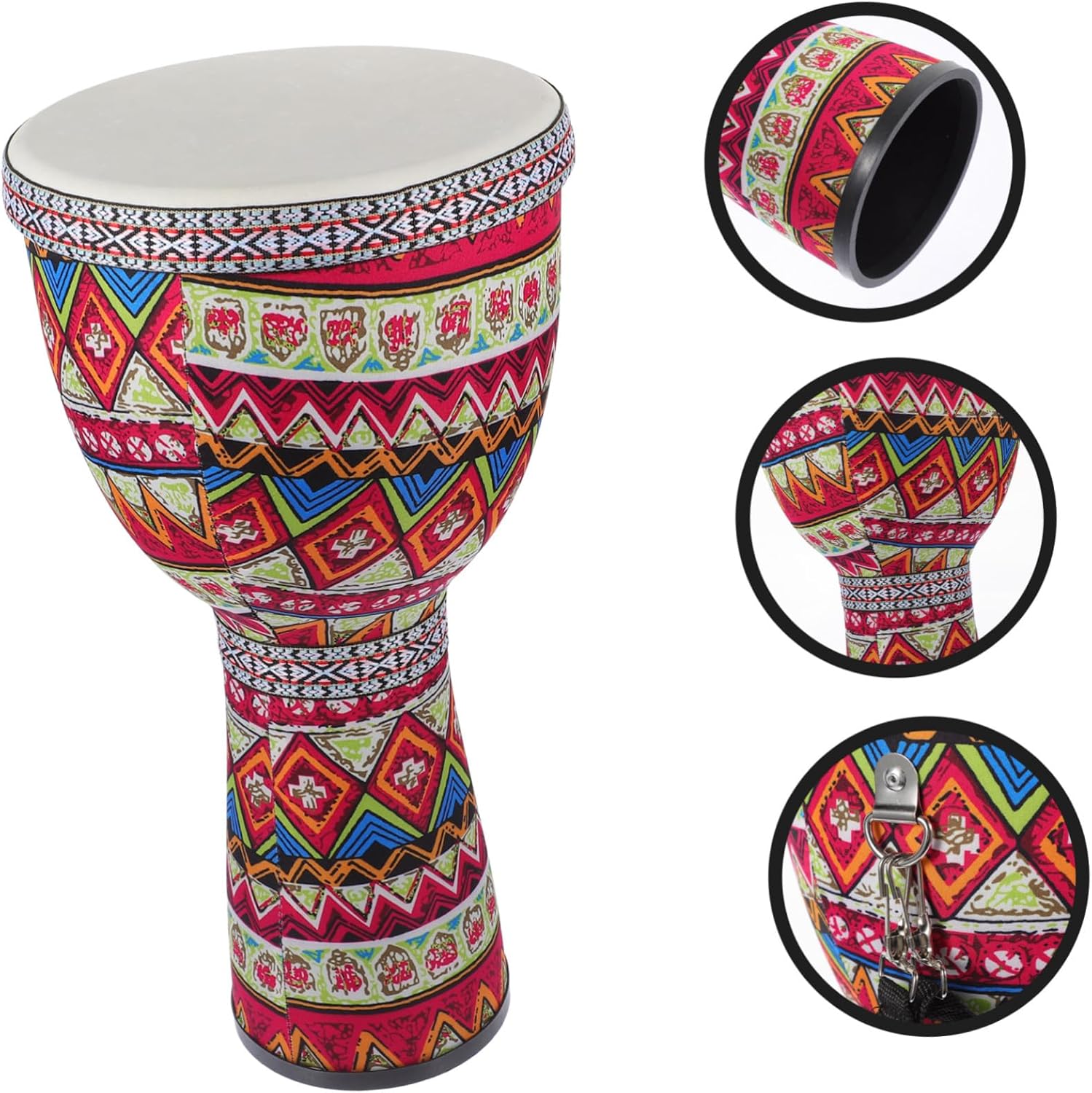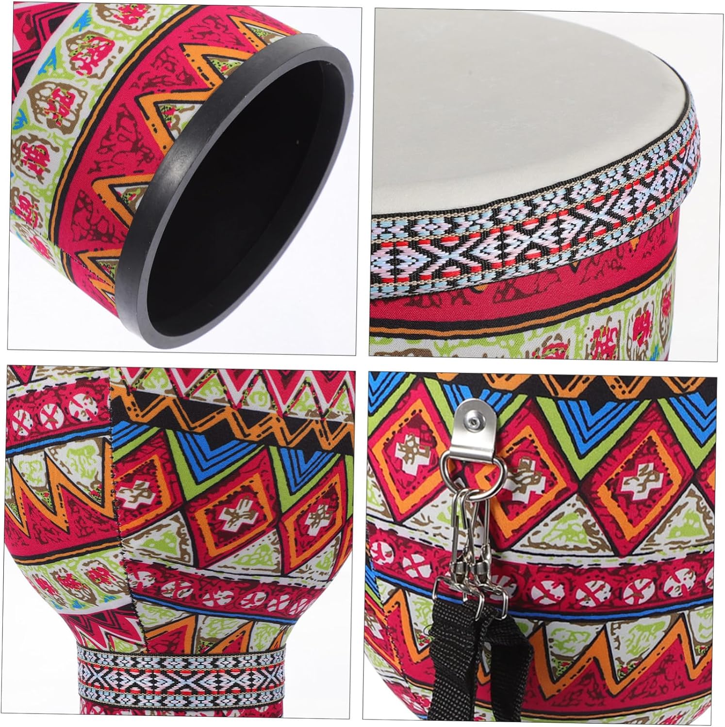 Comoda cinghia per un facile trasporto: facile da trasportare con una cinghia per un comodo trasporto, tamburo djembe africano, strumenti musicali africani Compatto per una facile conservazione e stabilità: le dimensioni compatte di questo tamburo djembe ti offrono comodità, tamburo a percussione compatto, tamburo a percussione Design accattivante con decorazioni tradizionali: design accattivante con decorazioni tradizionali, tamburo djembe per, strumento a tamburo manuale Tamburo potente portatile: le dimensioni compatte e il fondo piatto del tamburo djembe lo rendono facile da riporre e garantisce stabilità. Tamburo vuoto: il materiale è sicuro e durevole, resistente all'usura e pratico per un uso a lungo termine, ciondolo a tamburo africano leggero