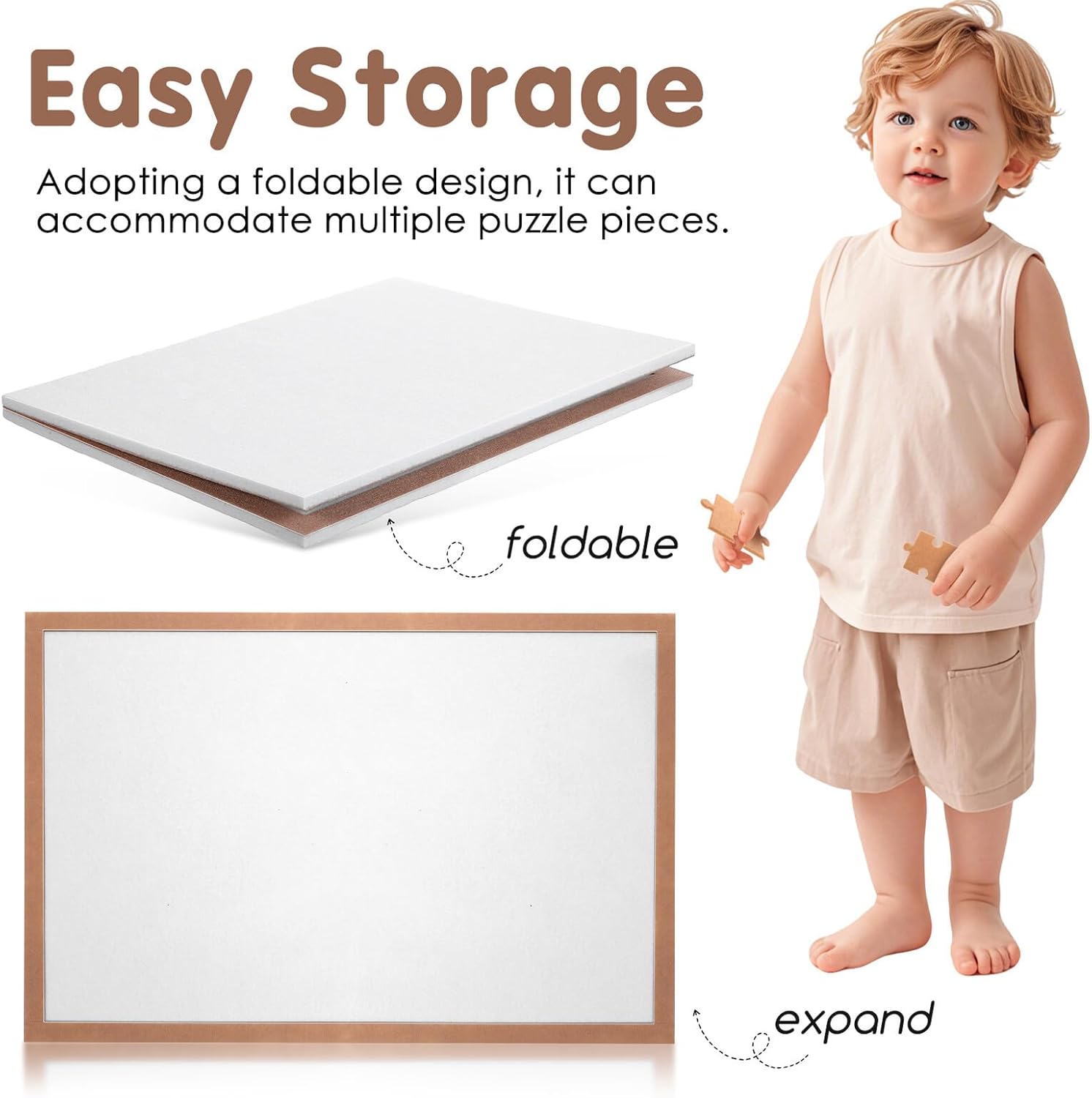Design pieghevole: grazie al design pieghevole, questo tappetino puzzle è facile da riporre e occupa uno spazio minimo quando non viene utilizzato. tagliere per puzzle, tagliere per puzzle portatile Design antiscivolo: questo speciale tappetino per puzzle antiscivolo presenta un design pieghevole per riporlo facilmente e può contenere molti pezzi, rendendolo ideale per puzzle di grandi dimensioni, tavole per puzzle per adulti e tavole per puzzle Design antiscivolo: il design antiscivolo di questo tappetino per puzzle fornisce una superficie stabile per il lavoro del puzzle e impedisce ai pezzi del puzzle di scivolare o muoversi durante il processo Strumento versatile: questo tappetino per puzzle è uno strumento versatile adatto per puzzle, artigianato e varie altre attività, rendendolo un'ottima aggiunta a qualsiasi bricolage raccolta. Tabellone puzzle pieghevole, tabellone puzzle portatile Dimensioni pratiche: la giusta dimensione lo rende un pratico tagliere per puzzle, ideale per chi preferisce puzzle più piccoli, tabellone puzzle bianco, cornice pieghevole per puzzle