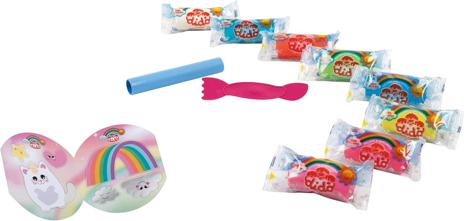 Nel magico mondo di Didò arriva il Secchiello SweetyCorn, una proposta di gioco ecologica e coinvolgente. Grazie alla formina sul coperchio e agli attrezzini contenuti, è facilissimo modellare dolcissimi unicorni con la pasta per giocare didò In più un cartoncino con personaggi ed elementi aggiuntivi arricchisce il gioco e stimola il gioco d’azione Didò ama la natura! Il secchiello e gli attrezzini sono realizzati in plastica rigenerata e unisce divertimento e sostenibilità, trasformando ogni momento di gioco in un’avventura responsabile Il secchiello contiene: 8 salsicciotti di pasta per giocare didò da 50g in colori assortiti GLITTER; 1 mattarello in plastica rigenerata, ideale per modellare e dare forma; 1 coltellino in plastica rigenerata, perfetto per tagliare e personalizzare; 1 cartoncino con elementi gioco Il nostro prodotto è conforme alla normativa vigente in materia di limitazioni e divieti nell’uso delle microplastiche