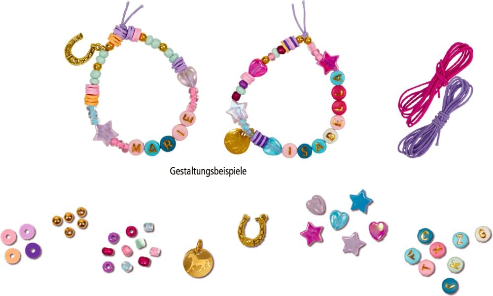 Kit creativo: il set di perline ispira i bambini a creare i propri braccialetti unici. Contenuto della confezione: set di circa 300 pezzi, ideale per circa cinque braccialetti. Materiali versatili: perline in plastica e vetro garantiscono colori vivaci, mentre i ciondoli in metallo offrono una stabilità duratura. Perfetto per i piccoli appassionati di cavalli: con dettagli curati e ciondoli affascinanti, ideali per i bambini che vogliono esprimere la propria passione per i cavalli in modo creativo. Ottimo regalo per occasioni creative: perfetto per feste di compleanno dei bambini, come pensierino o per un divertente pomeriggio artigianale.
