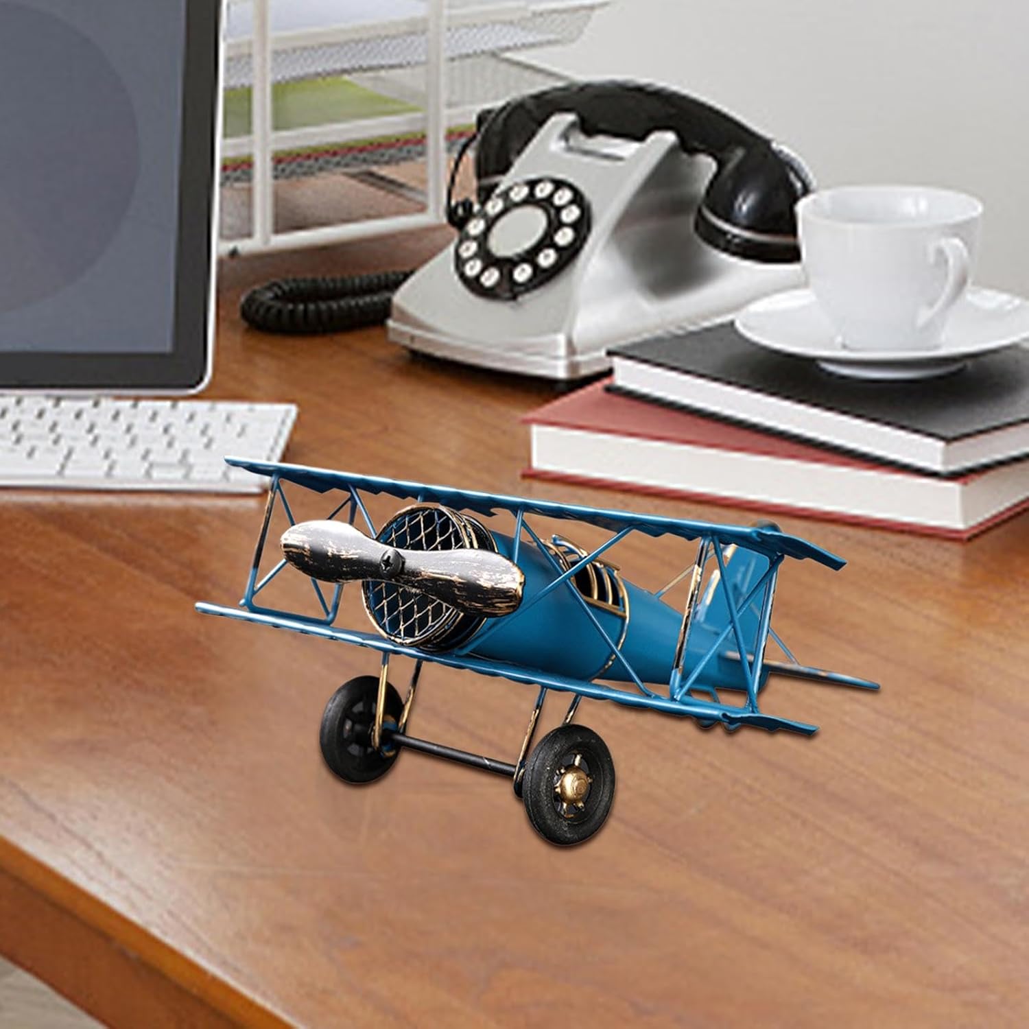 Beautifully crafted vintage biplane design for unique decor: This diecast airplane model is styled with intricate details and a classic retro look, making it a standout decorative piece for home, , or special event settings like Christmas or birthdays Durable metal iron construction for lasting appeal: Made from good-quality iron materials, this airplane sculpture ensures robustness and resistance to wear, maintaining its charming vintage aesthetic over time as a collectible or display item Compact and lightweight design for versatile placement: The sculpture’s manageable size allows for easy display shelves, desks, coffee tables, or mantels, making it a versatile addition to various decor styles, from rustic to modern retro themes Perfect gift for aviation enthusiasts and vintage decor lovers: This classical biplane model is an ideal present for birthdays, Christmas, or other special occasions, offering a thoughtful and timeless gift choice for anyone with a passion for aviation or nostalgia Adds a touch of historical charm to your space: With its elegant design and retro , this biplane aircraft model blends functionality and style, bringing a unique and sophisticated accent to living rooms, bedrooms, offices, or creative spaces