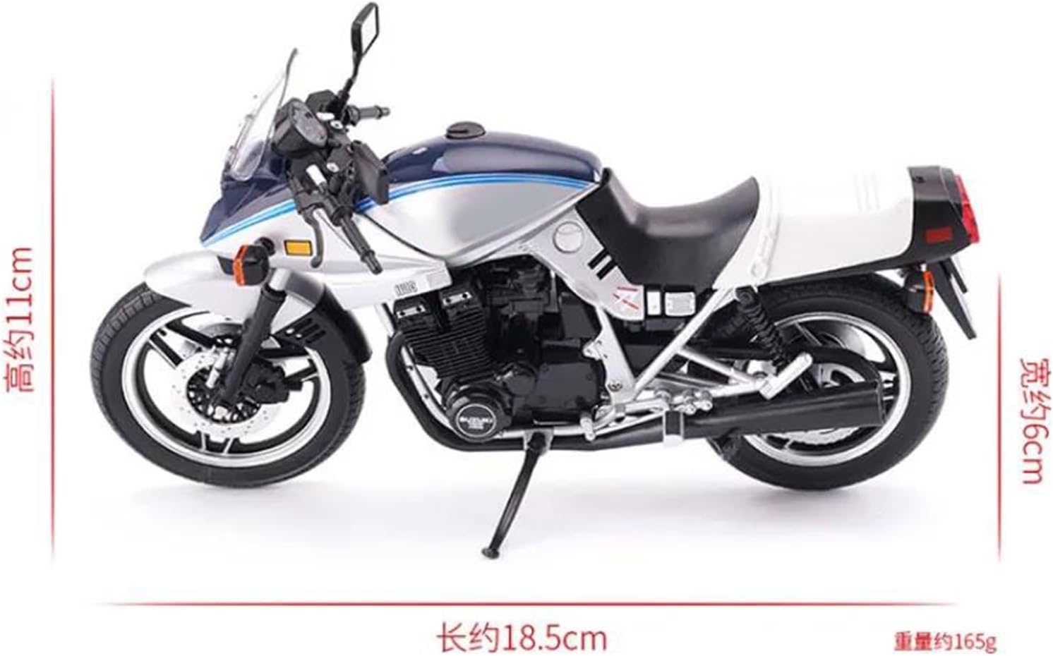 Modello di motocicletta per GSX1100 K&atana Modello di motocicletta giocattolo in scala 1:12, materiale: lega + ABS, dimensioni: circa 18,5 * 11 * 6 cm Il modello di motocicletta è un modello squisito realizzato in stretta conformità con la forma, la struttura, il colore, gli interni e altre proporzioni del veicolo originale. È un modello in miniatura del veicolo originale ed è progettato per riprodurre l'aspetto del veicolo originale. Modello di auto di simulazione Realizzato in resistente lega di zinco, è resistente alle cadute e all'usura, garantendo la durevolezza del modello e la sua lunga conservazione. La finitura della vernice è uniformemente liscia, con colori vivaci e duraturi che resistono allo sbiadimento e alle scheggiature, garantendo un aspetto costantemente brillante.