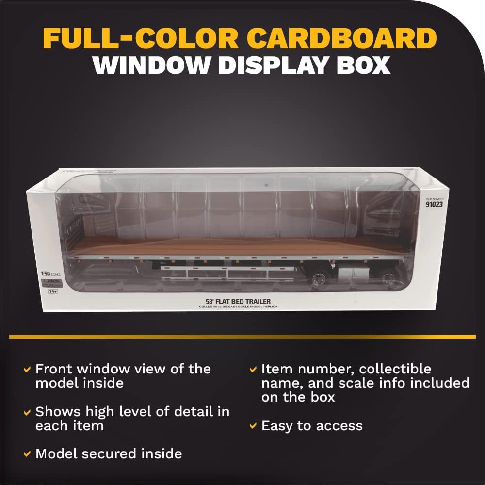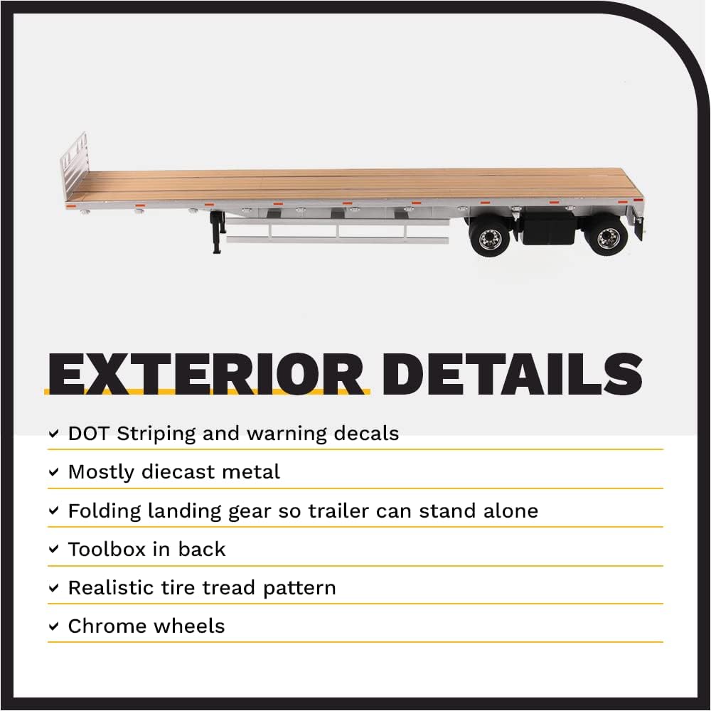 Prodotto con licenza ufficiale: Dettagliato rimorchio a pianale da 53 piedi, scala 1:50 Replica in metallo originale e in scala reale in qualità da collezione, con scatola in vetrina di alta qualità Dimensioni: circa 27 x 7 x 7,5 cm Design argentato e molte parti aggiuntive per un look realistico Da 14 anni e non adatto come giocattolo
