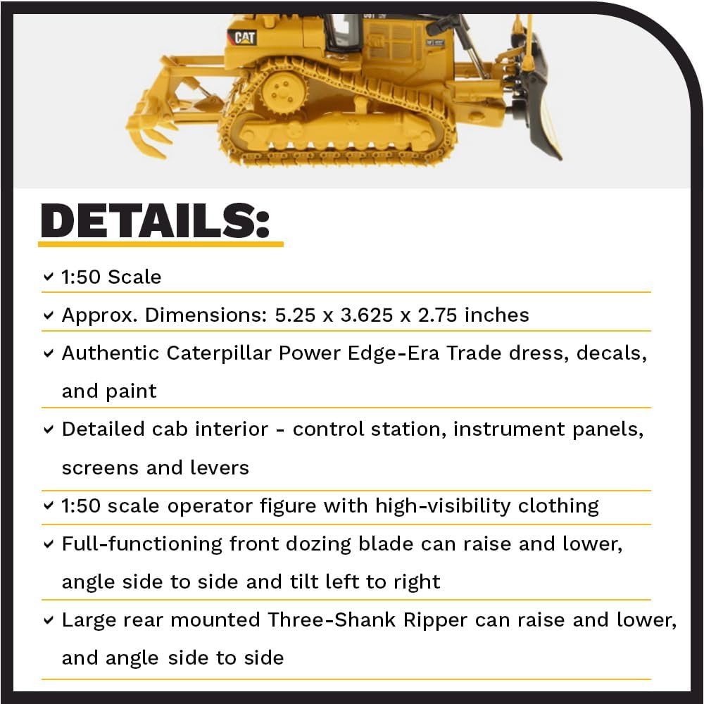 Prodotti CAT: dozer cingolato CAT giallo D6T XW dettagliato, scala 1:50 Riproduzione in metallo e in scala reale da collezione, inclusa scatola da esposizione di qualità Formato: circa 13.5 x 9.3 x 7 cm Parti mobili, binari, nei colori e nelle marcature CAT Da 14 anni e non adatto come giocattolo