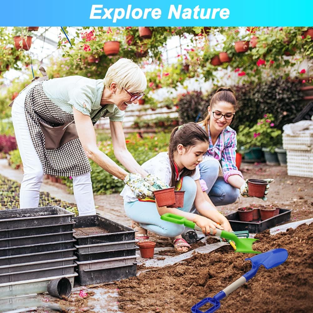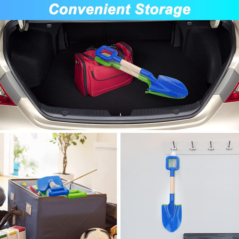 Strumenti di alta qualità: robusto manico in legno, plastica dura ABS rende la pala più resistente. La lunghezza di 40 cm è perfetta per i più piccoli. Il manico sottile è perfetto per le mani dei più piccoli. Divertente borsa da spiaggia: adatta per l'estate e l'inverno. Con questa grande vanga potrete divertirvi anche a spalare la sabbia. Può promuovere il desiderio dei bambini di giocare e scoprire, semplicemente di divertirsi tra genitori e figli. Giocattolo fantastico: il set completo viene fornito con 2 pale (blu/verde) e una borsa a rete. Quando i bambini ricevono la pala da spiaggia, non vedono l'ora di togliere di mano i loro telefoni e tablet e invitare i loro amici a giocare insieme. Multifunzione: set di attrezzi da giardino, manico in legno leggero e bella pala in plastica. Comodo per sabbiere, giochi da spiaggia, trapianti di piante, ecc. Ideale per la spiaggia, sabbiere, giardino e molto altro Ottimo regalo: le pale da spiaggia sono regali e ottimi strumenti per sviluppare abilità, vista, cervello, presa, comunicazione genitore-figlio, giocattoli interattivi, ecc. L'estate è qui, vieni a portare questi elementi essenziali per la spiaggia estiva per goderti le vacanze