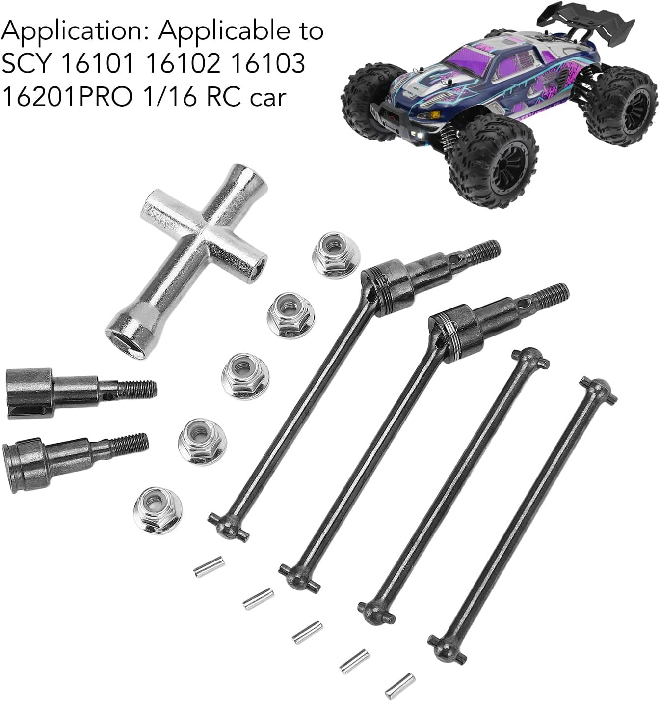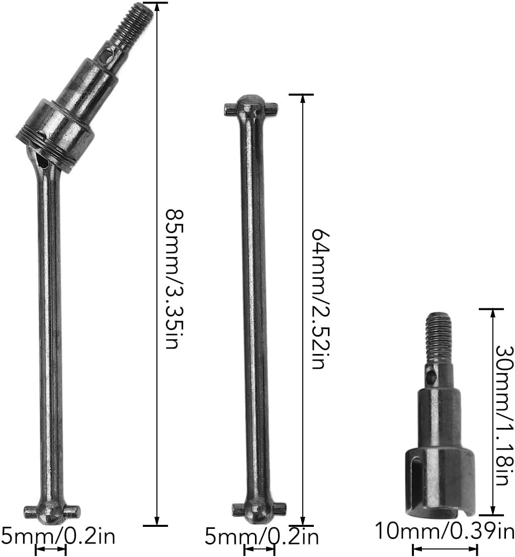 APPLICAZIONE: il set di alberi di trasmissione anteriori e posteriori per auto RC è molto adatto per auto SCY 16101 16102 16103 16201PRO 1/16 RC. FINE WORKMANSHIP: la potenza dell'albero di trasmissione CVD anteriore e posteriore viene trasferita alle ruote per far sì che l'auto RC produca forza motrice e migliori la potenza dell'auto RC FUNZIONAMENTO LISCIO: l'angolo dell'albero di trasmissione RC è ampio e regolare, aumentando la scorrevolezza e il design dell'angolo, rendendo l'albero di trasmissione più fluido e potente, con effetto di trasmissione più elevato e più stabile. FINE WORKMANSHIP: la potenza dell'albero di trasmissione CVD anteriore e posteriore viene trasferita alle ruote per far sì che l'auto RC produca forza motrice e migliori la potenza dell'auto RC MATERIALE PREMIUM: l'albero di trasmissione per auto RC è realizzato in materiale d'acciaio ad alta durezza, resistente e durevole, non facile da rompere e danneggiare, lunga durata