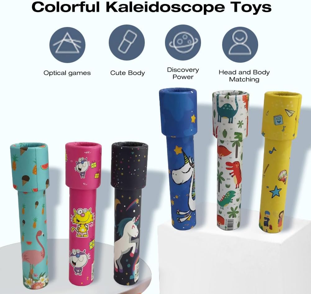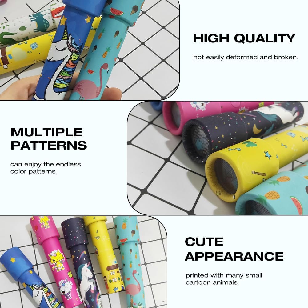 ASPETTO SVEGLIO: l'aspetto del caleidoscopio è molto carino, stampato con tanti piccoli animali dei cartoni animati, pieno di divertimento infantile. CUSTODIA DI CARTA: il guscio esterno del caleidoscopio è fatto di carta, che è molto resistente e non si deforma e si rompe facilmente. MODELLI MULTIPLI: ogni del caleidoscopio crea schemi intricati che ti stupiranno e ti intratterranno e ti porteranno un divertimento senza fine. CUSTODIA DI CARTA: il guscio esterno del caleidoscopio è fatto di carta, che è molto resistente e non si deforma e si rompe facilmente. MIGLIORARE L'OSSERVAZIONE: Basta ruotare il caleidoscopio per godere degli modelli di colore, migliorando la pazienza, l'osservazione e la curiosità dei bambini.