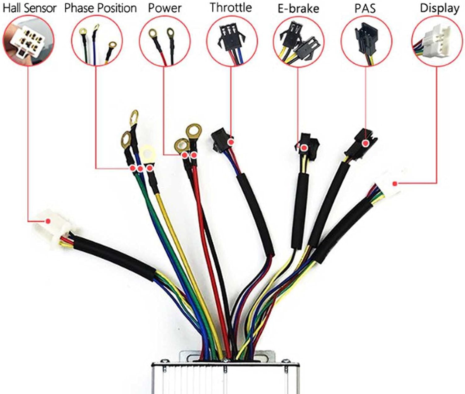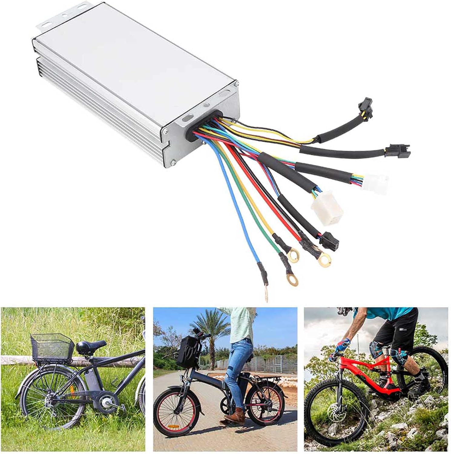Adatto per mountain e bici da strada. I cavi hanno colori diversi per una facile installazione. I fili e le interfacce sono durevoli e garantiscono piccolo malfunzionamento con uso prolungato. Questo prodotto è controller del motore brushless che fornisce una velocità costante e controllo sensibile dei cambiamenti di frenata e direzione. La custodia del controller è realizzata in lega di alluminio con design scanalato, che può proteggere il circuito interno e ha una buona funzione di dissipazione del calore per evitare sovraccarichi termici.