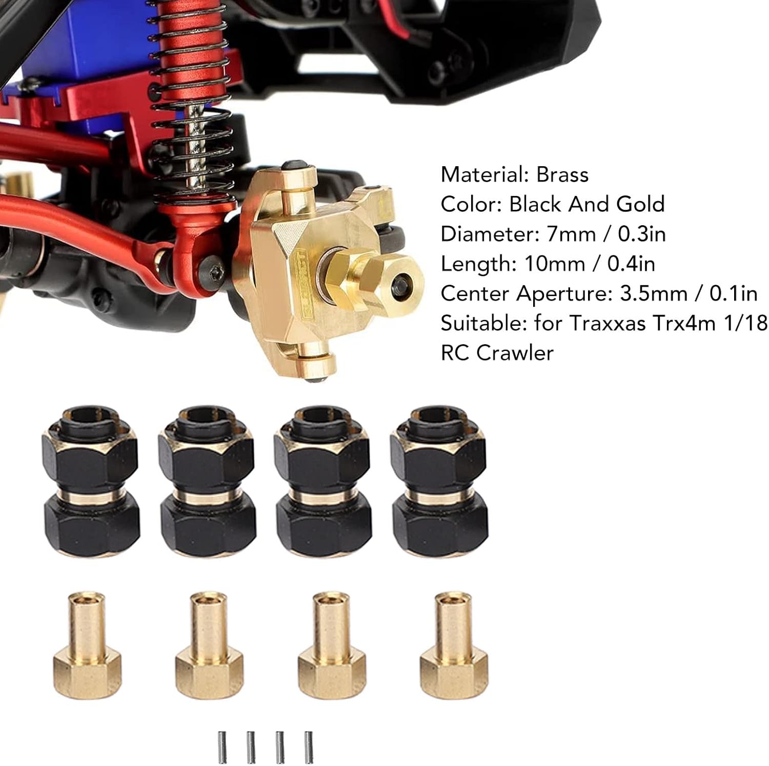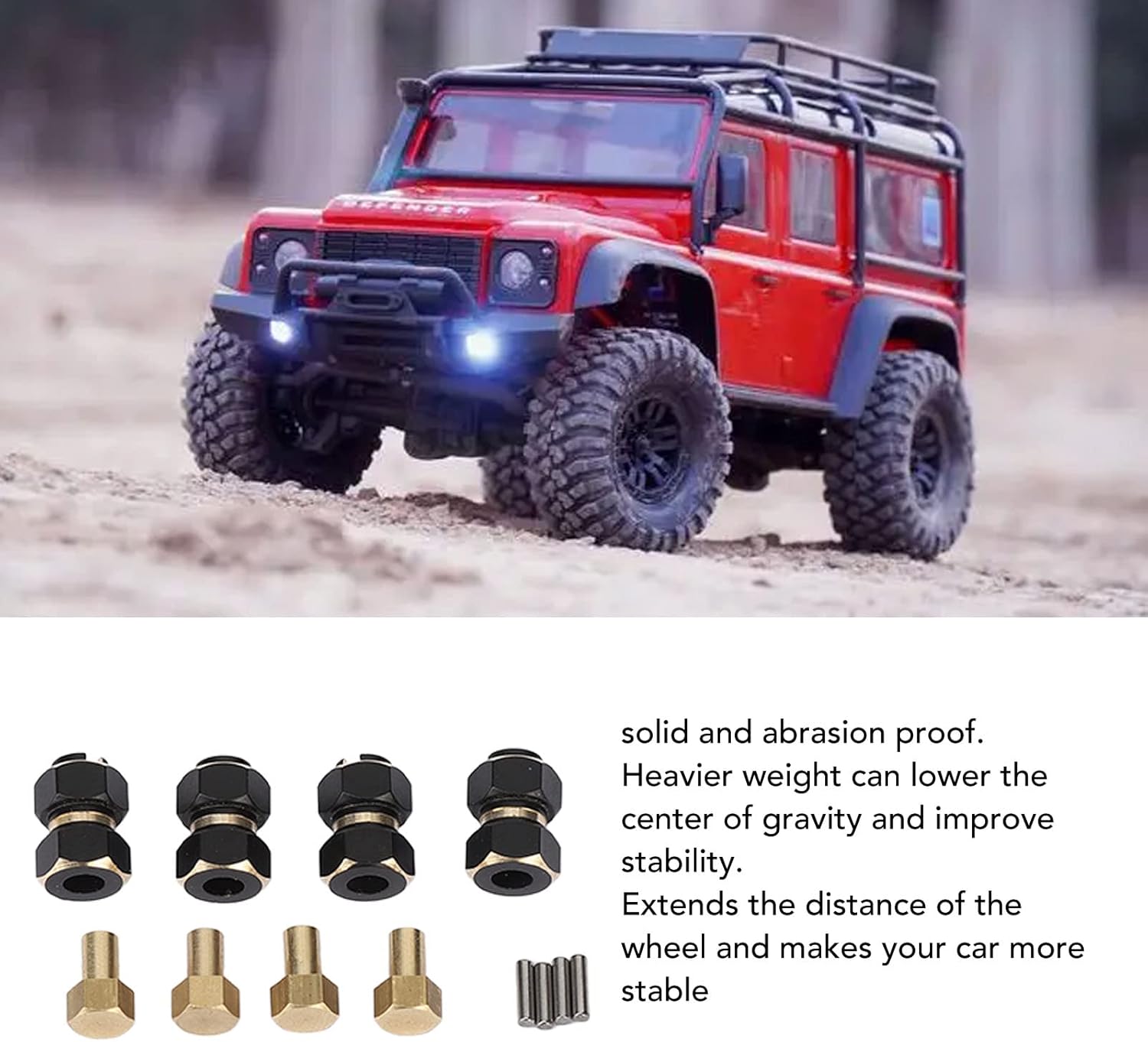 esagonale RC: peso maggiore può abbassare il centro di gravità e migliorare la stabilità. Rendere i crawler RC più stabili nel processo di arrampicata, evitare il ribaltamento. Compatibilità: il esagonale in ottone da 10 mm è compatibile con il cingolo RC 1/18 TRX4M. Estende la distanza della ruota e rende la tua auto più stabile e fresca. Prestazioni stabili: il esagonale RC estende la carreggiata per atteggiamento più ampio, migliore controllo e stabilità. Rende la tua auto più stabile. Compatibilità: il esagonale in ottone da 10 mm è compatibile con il cingolo RC 1/18 TRX4M. Estende la distanza della ruota e rende la tua auto più stabile e fresca. Estensione lunga 10 mm: il design allargato può migliorare la stabilità, la velocità in curva e l'efficienza della frenata in modo più ampio.