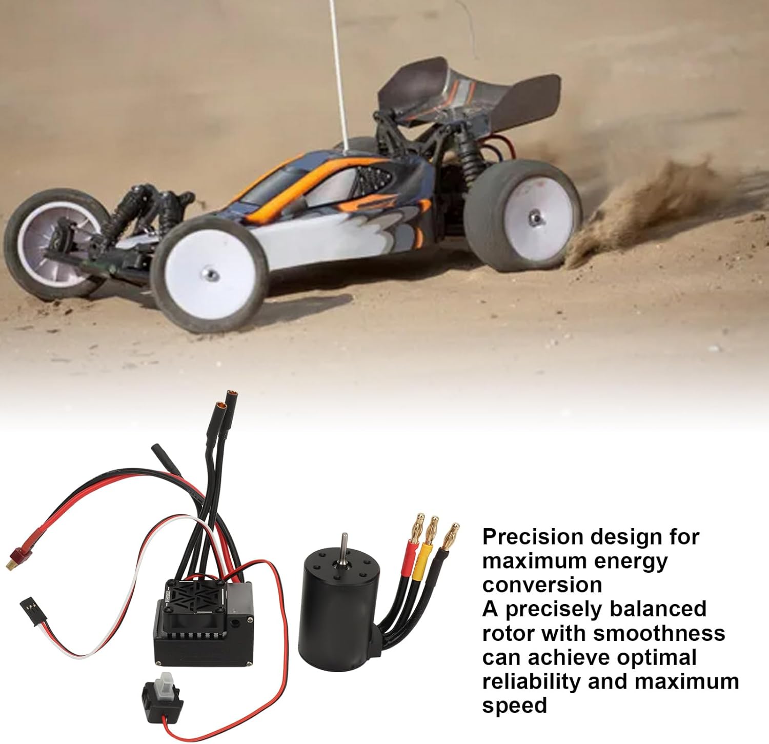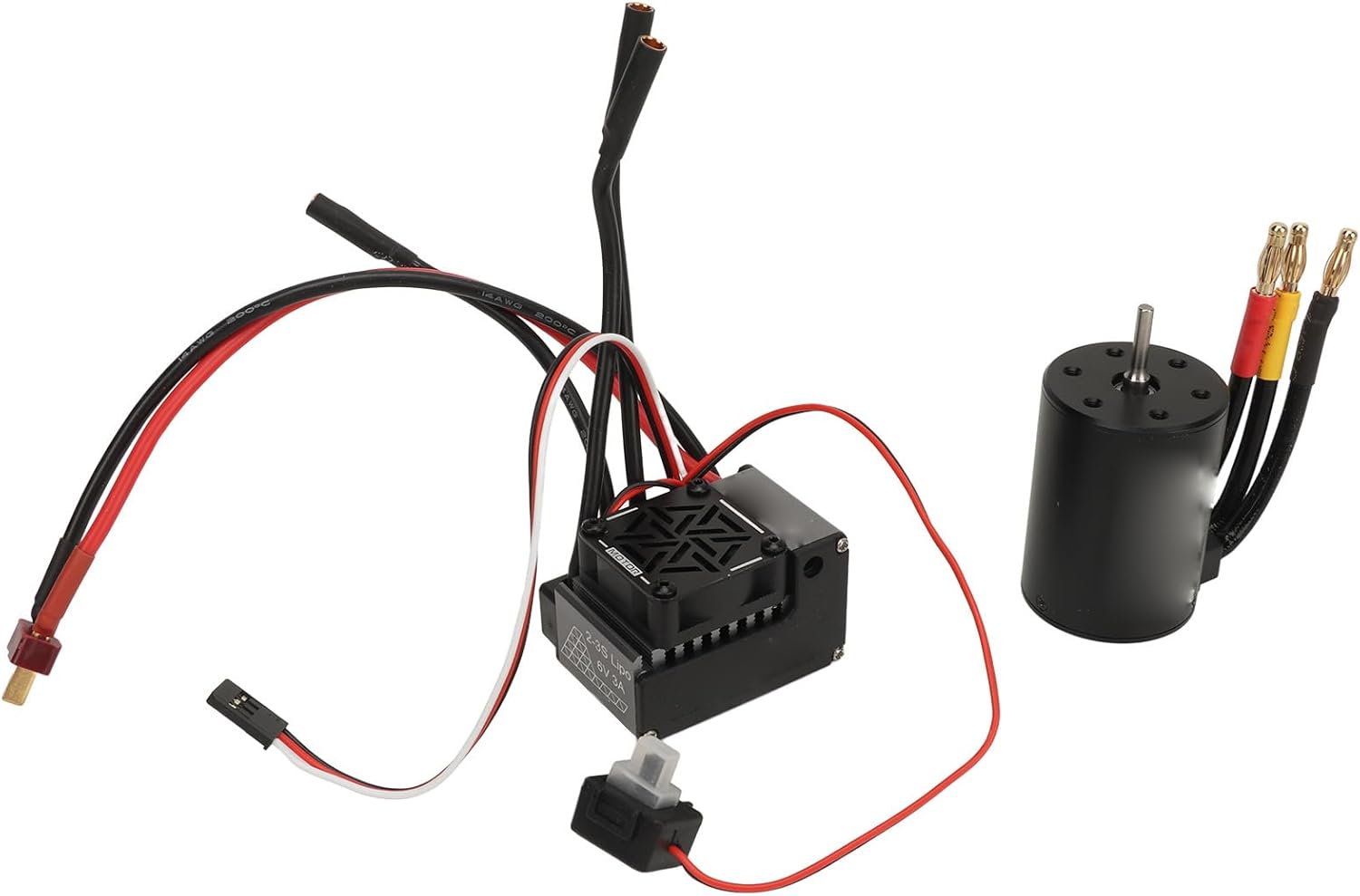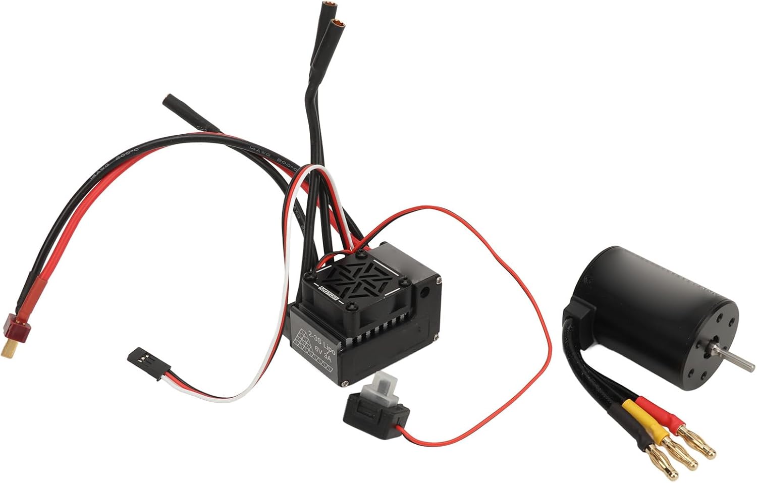 Compatibilità: motore brushless 3650 e controller brushless 60A per auto RC 1/10. Ideale per le corse, il drifting o il tempo libero! Durevole e affidabile: rotore liscio e perfettamente bilanciato per un'affidabilità ottimale e la massima velocità. Il sistema di azionamento ad alta frequenza e i transistor ad effetto di campo a bassa resistenza aumentano la capacità di carico e migliorano l'utilizzo dell'energia. Installazione semplice: la combinazione di motore brushless 3650 e controller da 60 A è dotata di connettori compatibili e fori di montaggio con adattatori per batterie al litio con connettore a T e XT60. Protezione: la combinazione altamente efficiente di motore brushless e controller è dotata di protezione da spegnimento a bassa tensione, protezione da surriscaldamento, protezione dalla perdita del segnale dell'acceleratore e protezione dallo stallo del motore. Design: il motore brushless 3650 adotta un design del motore a 4 poli e 12 slot, garantendo una lunga durata e un funzionamento stabile.