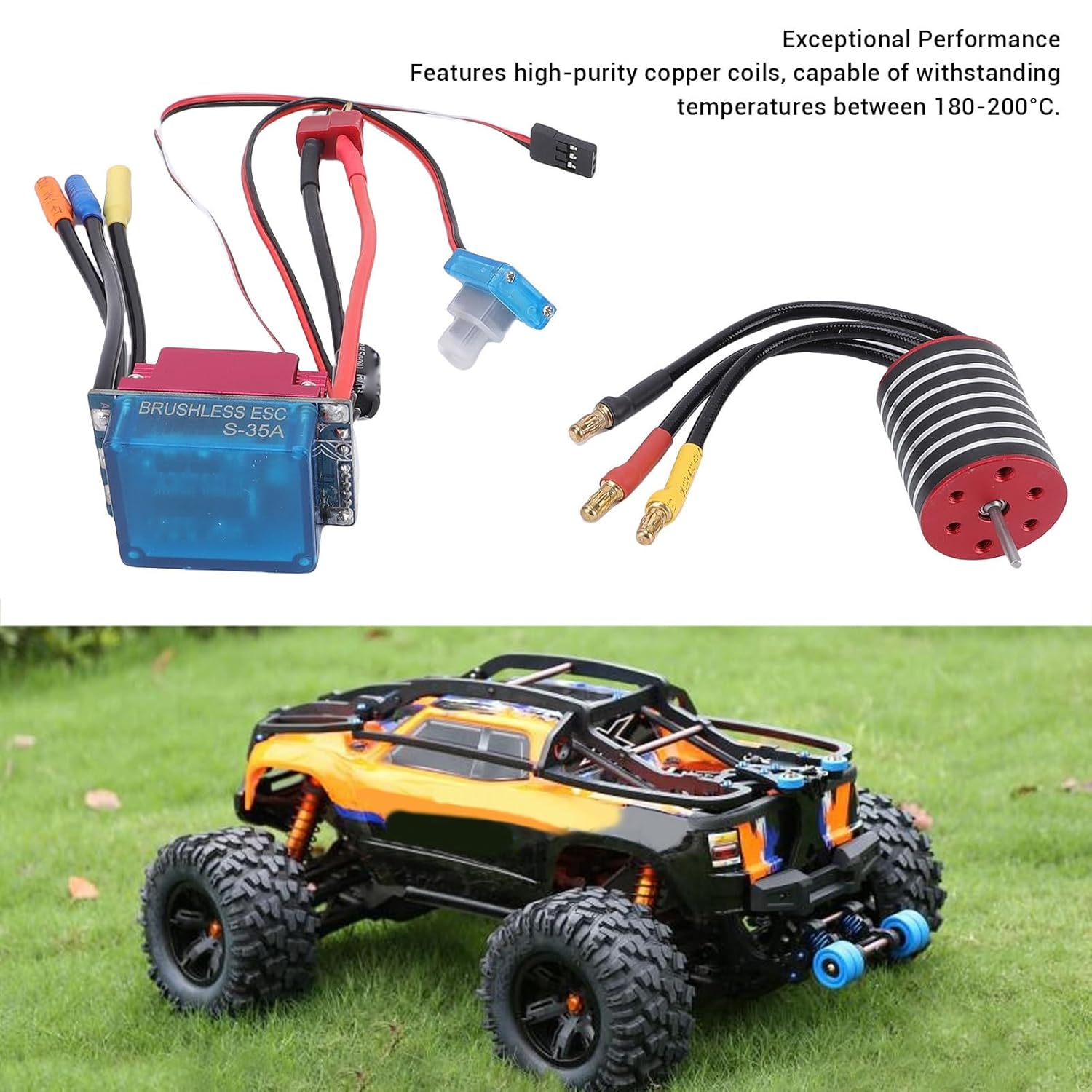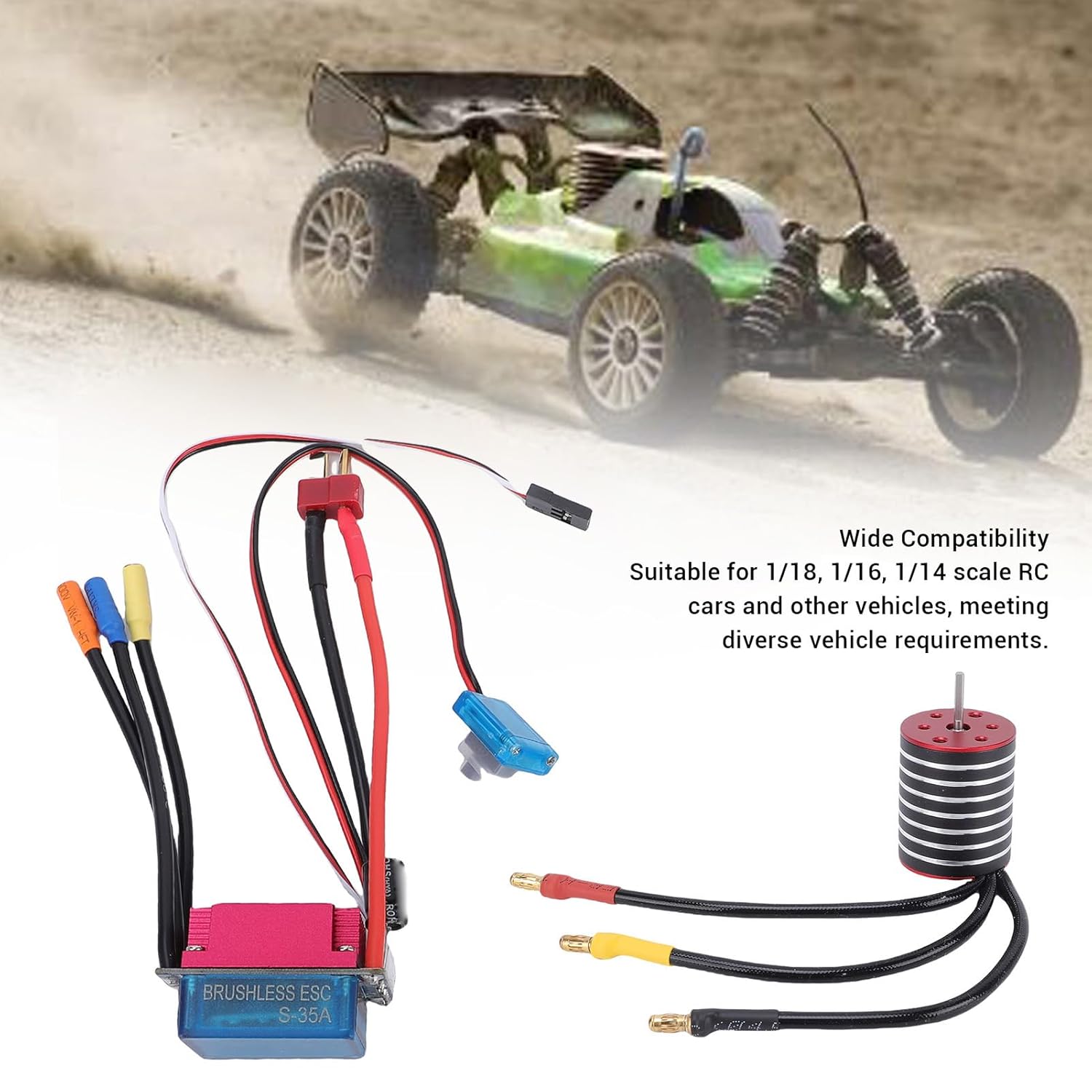 Comoda connettività: l'estremità del motore RC è dotata di un connettore femmina da 3,5 mm, mentre l'estremità di alimentazione utilizza un connettore maschio di tipo T. È compatibile con una batteria al litio da 2 celle o con una batteria NIMH da 4-6 celle (batterie vendute separatamente). Ampia compatibilità: questo kit ESC con motore brushless RC si adatta a una varietà di auto RC tra cui 1/18, 1/16 e 1/14. Che tu sia un hobbista o un pilota professionista, goditi prestazioni superiori. Silenzioso e durevole: la struttura portante sigillata integrata riduce efficacemente l'attrito e il rumore operativo, migliora la precisione, offre un'esperienza operativa più silenziosa e fluida e prolunga la durata. Prestazioni elevate: il motore per auto RC impermeabile è dotato di avvolgimenti in rame di elevata purezza con eccellente tolleranza al calore (180-200°C) per garantire prestazioni stabili ed efficienti anche in condizioni estreme. Artigianato di precisione: l'alloggiamento di questo motore RC ad alta velocità è CNC con finitura anodizzata, abbinato a un dissipatore di calore in lega di alluminio. Questo design offre una qualità costruttiva eccezionale e prestazioni termiche significativamente aumentate.