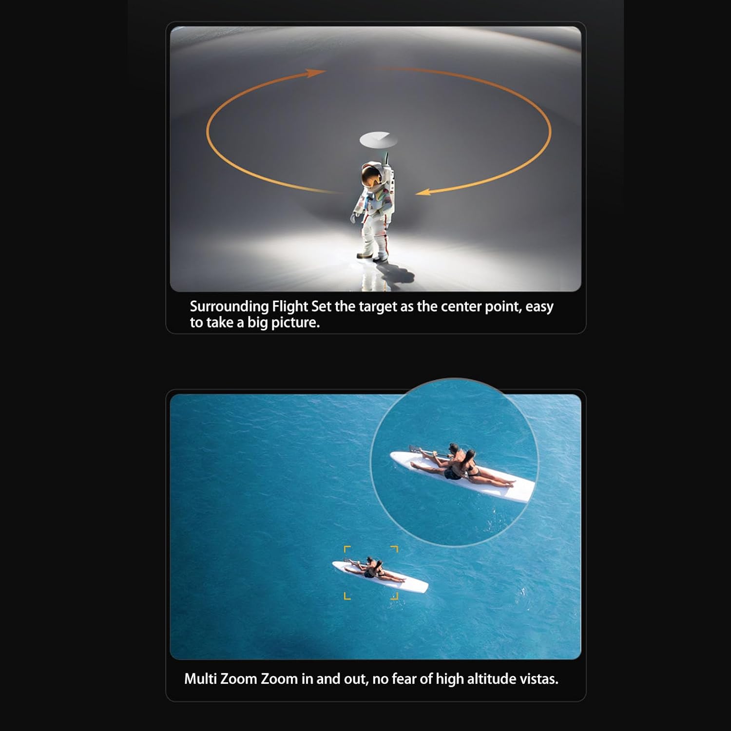 FUNZIONI MULTIPLE: viene fornito con la funzione di localizzazione GPS e una funzione di ritorno della chiave, che può tornare automaticamente in condizioni di basso consumo e fuori controllo. Nel frattempo, è dotato della modalità di impostazione dell'altezza del flusso ottico e della funzione di evitamento degli ostacoli su quattro lati, che rende il volo più stabile e sicuro. PIÙ DESIGN: il braccio può essere piegato e la pala eolica può essere piegata per un facile trasporto. Il telecomando è ricaricabile, con display retroilluminato, più comodo da usare. La fusoliera è dotata di 8 luci a LED per migliorare la sicurezza e la visibilità del volo. La marcia può essere cambiata liberamente e supporta anche la modalità senza testa. FUNZIONE WIFI: può scattare foto, video e trasmettere in tempo reale, con molte funzioni come arresto di emergenza, tracciamento del volo, un tasto surround, follow intelligente, aggiunta di musica, rotazione dello schermo, visualizzazione della posizione dell'aereo e così via. FOTOCAMERA HD: il drone RC è dotato di doppia fotocamera HD integrata. La fotocamera frontale può essere regolata tramite telecomando. Supporta l'inquadratura a 180° per fornire una visione più completa. 6 CANALI CON GIROSCOPIO: è in grado di salire, scendere, avanti, indietro, girare a sinistra, girare a destra, volare a sinistra, volare a destra, ., il volo è stabile e facile da usare.