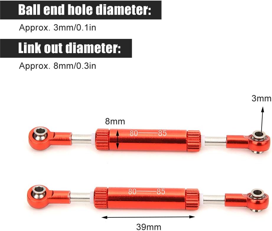 [Performance migliorate] Aggiorna la tua auto RC con questi accessori per leva dello sterzo [Lunghezza personalizzabile] Regolabile di 75-100 mm per la regolazione personalizzata [Funzionamento regolare] Diametro del foro a sfera da 3 mm per movimento senza soluzione di continuità [Light Design] pesa 11 g per effetti minimi sulle prestazioni [Fit Universal] Compatibile con SCX10 D90 1/10 RC Auto