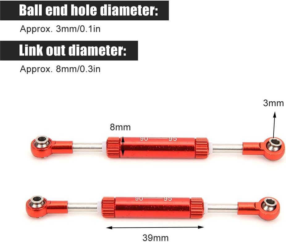 [Performance migliorate] Aggiorna la tua auto RC con questi accessori per leva dello sterzo [Lunghezza personalizzabile] Regolabile di 75-100 mm per la regolazione personalizzata [Funzionamento regolare] Diametro del foro a sfera da 3 mm per movimento senza soluzione di continuità [Light Design] pesa 11 g per effetti minimi sulle prestazioni [Fit Universal] Compatibile con SCX10 D90 1/10 RC Auto