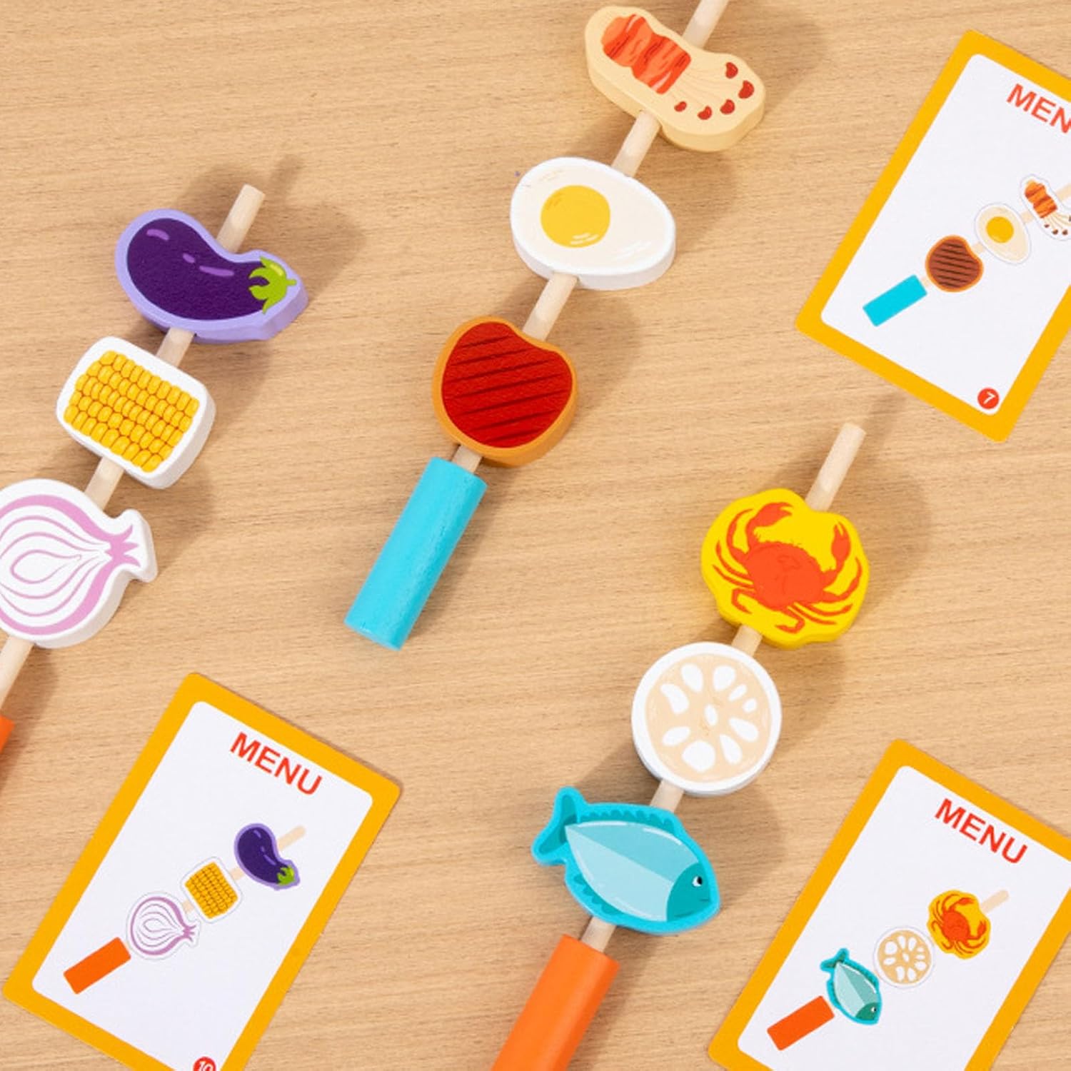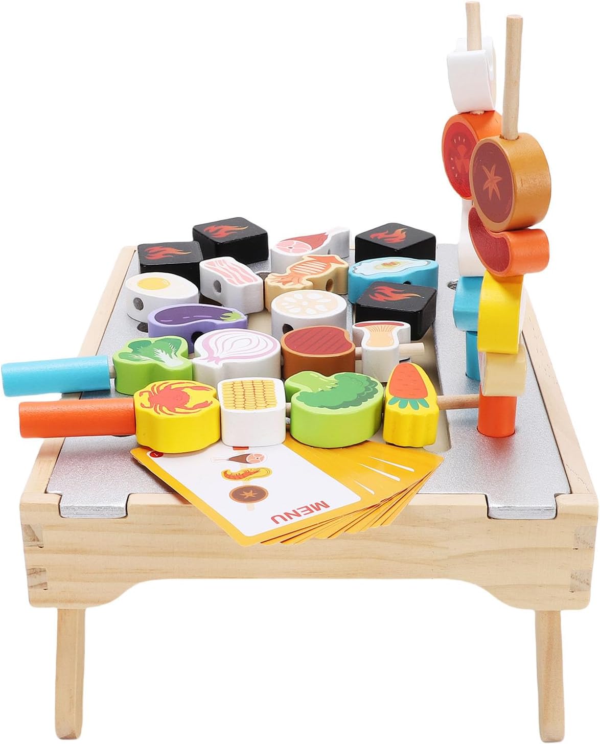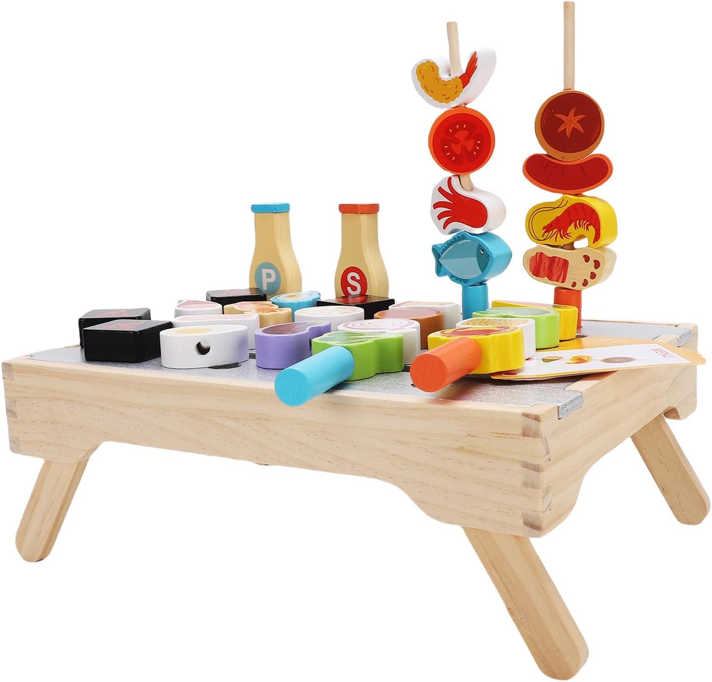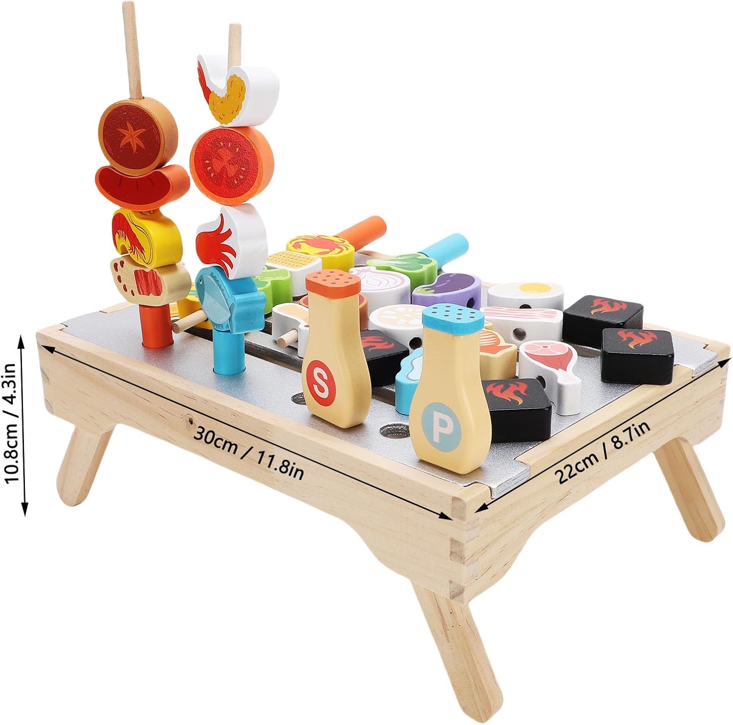 [ISPIRA L'IMMAGINAZIONE] Il set da gioco per barbecue in legno imita una vera griglia da cucina, stimolando la creatività e il divertimento dei giochi di ruolo per i bambini. [ESPERIENZA DI CUCINA] Dotati di spiedini e accessori per griglia, i bambini possono migliorare le loro abilità culinarie e la comprensione del cibo. [GIOCO EDUCATIVO] Simulando una scena di cucina, i bambini imparano a conoscere il cibo, i colori e i numeri mentre sviluppano capacità cognitive. [INTERAZIONE GENITORE-BAMBINO] Ideale per favorire la comunicazione linguistica e il legame emotivo tra genitori e figli durante il gioco. [SICURO E DUREVOLE] Realizzato in legno di gomma con vernice inodore a base d'acqua, garantisce sicurezza e longevità per il divertimento dei bambini. Questo giocattolo interattivo è un'ottima scelta per trascorrere del tempo e imparare di qualità.