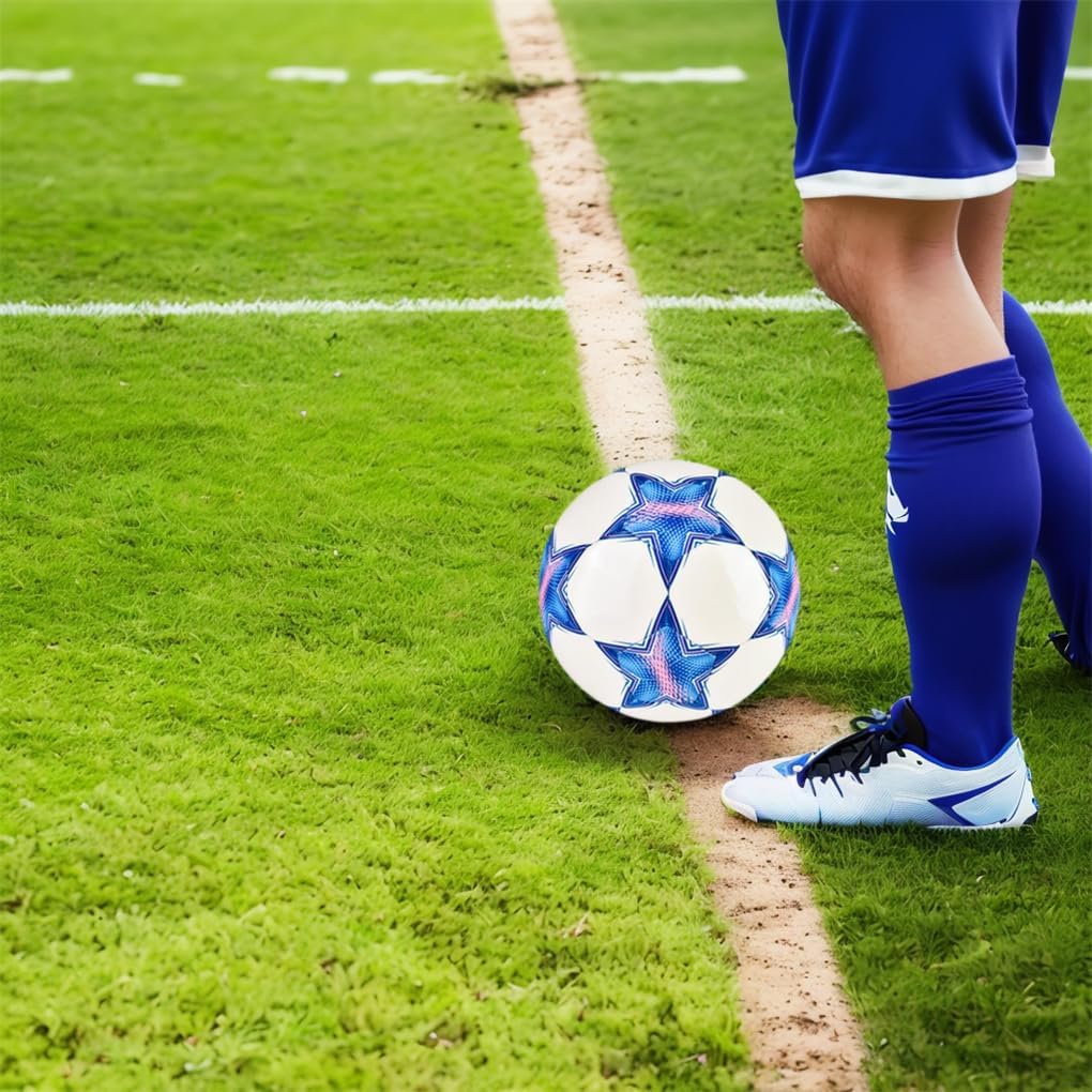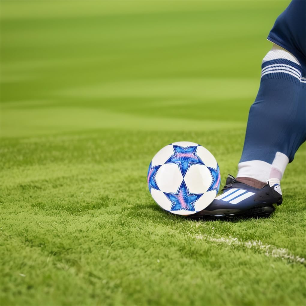 Motivo alla moda: il nostro pallone da calcio presenta un motivo a cinque stelle elegante e accattivante, che ti rende al centro dell'attenzione sul campo Materiale di qualità: realizzato con materiali PU di qualità, il nostro pallone da calcio offre durata superiore e prestazioni di lunga durata Ampia applicazione: adatto a varie superfici, il nostro pallone da calcio può essere utilizzato su erba, tappeto erboso o anche al chiuso, offrendo versatilità per tutte le tue esigenze di allenamento calcistico Design luminoso: con la sua luce, il nostro pallone da calcio si illumina al buio, consentendo emozionanti partite notturne e maggiore visibilità Dimensioni standard: il nostro pallone da calcio è progettato per soddisfare gli standard ufficiali di dimensioni e peso, garantendo un'esperienza di gioco coerente e professionale