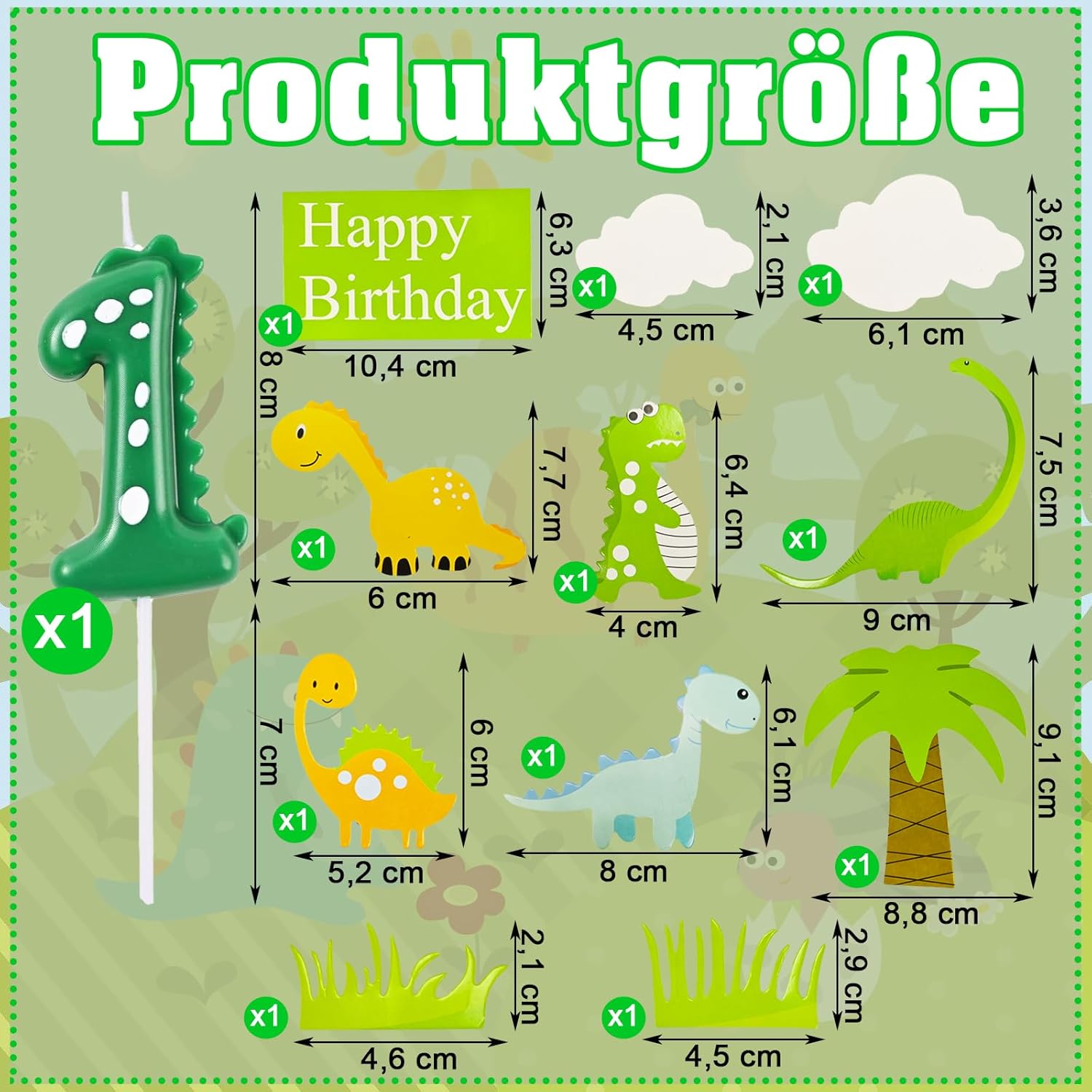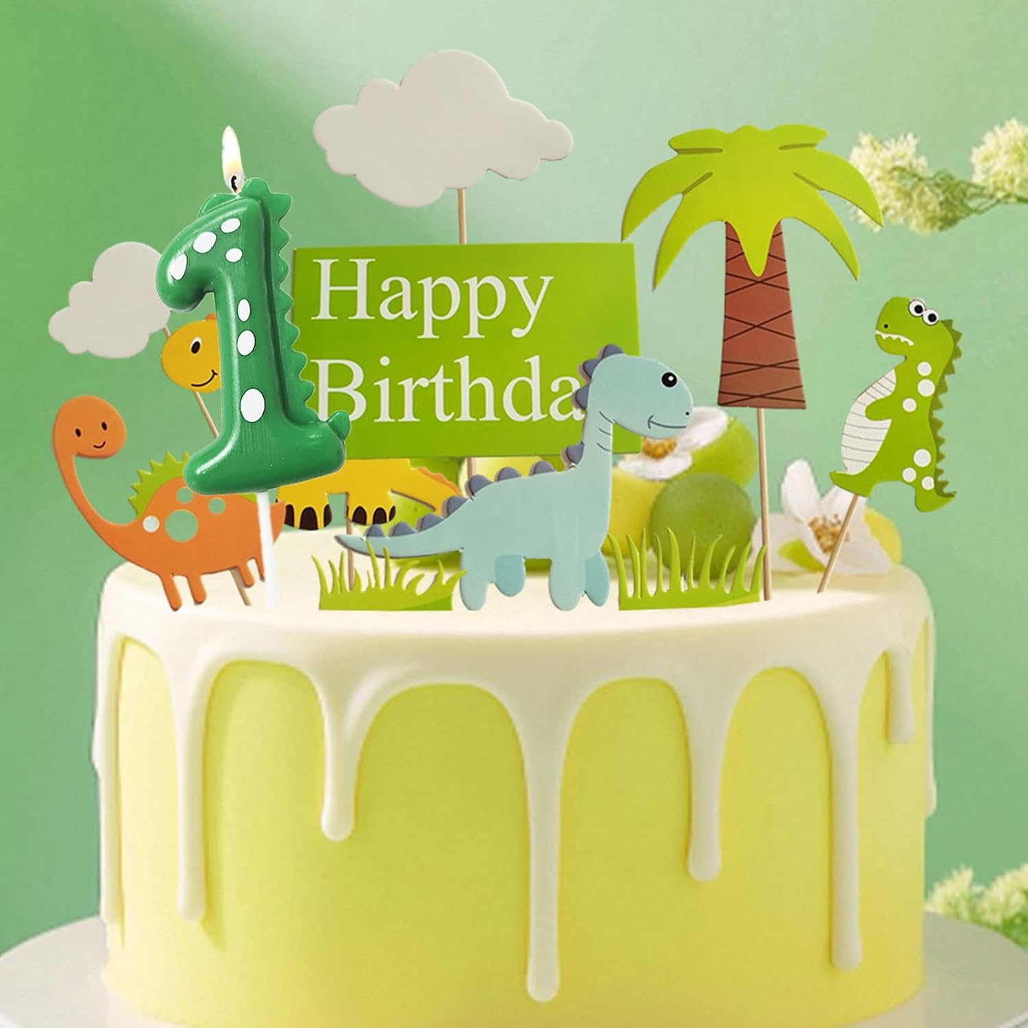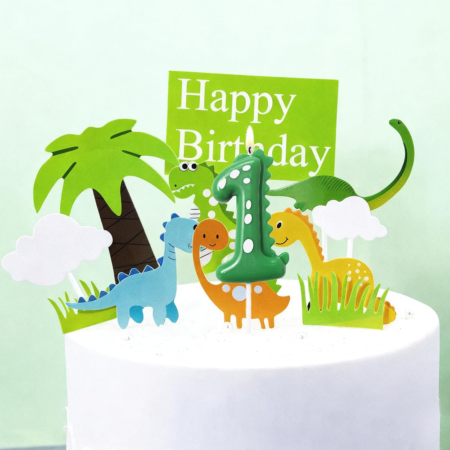 Simpatica candela dinosauro con numero "1" per il primo compleanno: questa dolce candela per il primo compleanno a forma di dinosauro con il numero "1" è la candela di compleanno ideale per i piccoli fan dei dinosauri. Garantisce una sorpresa speciale per ogni torta di compleanno Set da 11 pezzi per decorazioni colorate per torta: contiene diversi dinosauri, palme, nuvole e un cartello "Happy Birthday" – perfetto come decorazione per torta 1° compleanno ragazza o decorazione per torta 1° compleanno ragazzo. Crea un'atmosfera allegra e adatta ai bambini Decorazione creativa per torte per feste di dinosauro: con questa decorazione per torta del 1° compleanno, ogni torta diventa una piccola avventura da dinosauro. Ideale per il 1° compleanno, decorazione per bambini o per il primo compleanno, per ricordi indimenticabili 【Versatile per ragazzi e ragazze】 Non importa se la decorazione per il primo compleanno, una ragazza, una decorazione di compleanno per 1 anno o una torta di compleanno, questo set è la scelta perfetta per una festa a tema dinosauro. Si adatta a quasi tutti gli stili e temi della torta Idea regalo unica per il primo compleanno: rendi il primo compleanno qualcosa di molto speciale con questi affascinanti numeri di compleanno e i topper colorati. Una fantastica sorpresa per 1 compleanno bambina e 1 compleanno ragazzo