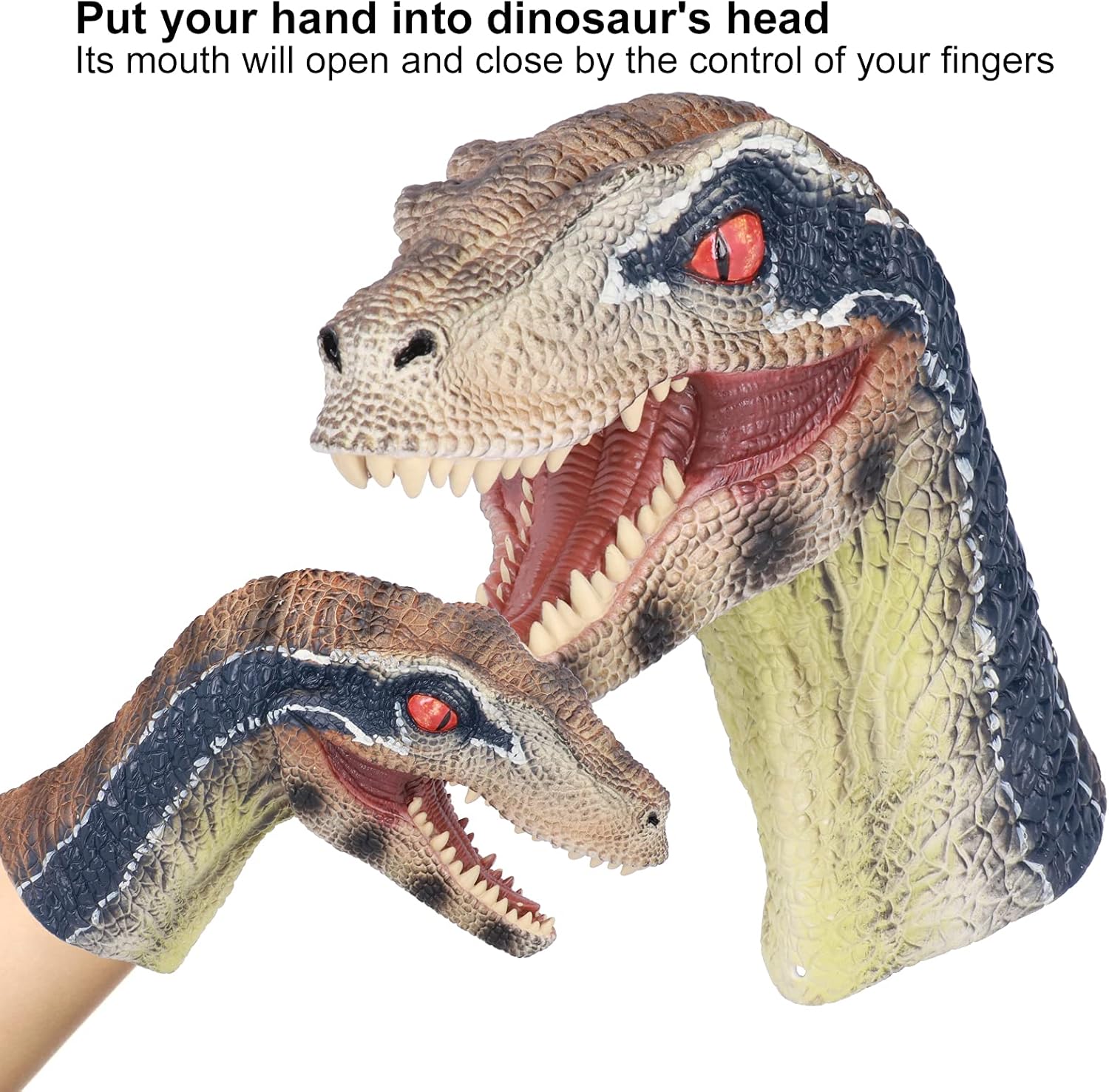 [Giocattolo educativo] stimola la curiosità dei bambini per le specie di dinosauri, la consapevolezza ambientale e la storia. [Apprendimento interattivo] Illumine i bambini su varie specie di dinosauri e le loro abitudini. [MOVABLE Dinosaur Head] consente ai bambini di controllare la bocca del burattino muovendo le dita. [Scopri il mondo dei dinosauri] Impara nomi, tipi e comportamenti dei dinosauri mentre divertiti. [Materiale di alta qualità] realizzato in PVC non tossico, garantendo un gioco sicuro per i bambini.