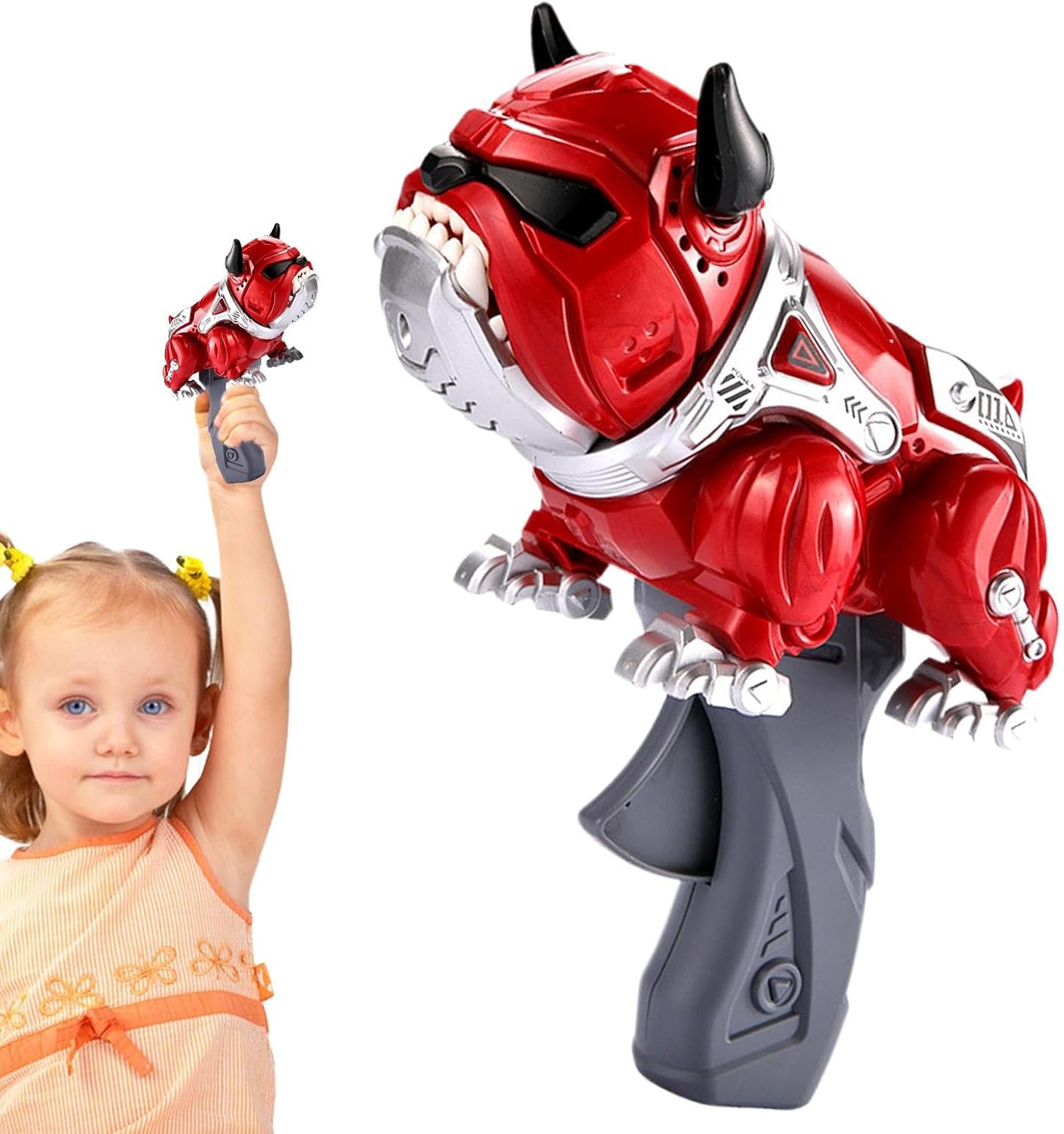 Controllo Remoto: Esplora scenari realistici con comando wireless intuitivo, attivando movimenti vivaci ed effetti sonori per un viaggio emozionante nel preistorico Cambio Batterie Istantaneo: Il dinosauro telecomandato ha batterie sostituibili con un semplice pulsante, ideale per bambini: manutenzione rapida e gioco continuo senza pause, garantendo facilità d'uso e divertimento senza interruzioni. Funzioni Interattive Luce-Suono: L'di design vivace, ruggiti realistici e luci LED multicolore crea effetti luminosi dinamici, garantendo spettacolo audiovisivo che ispira divertimento senza fine Copertura Migliorata: Caratteristiche interattive e movimenti realistici arricchiscono il gameplay con luci, suoni sincronizzati e interno per avventure dinosauri immersive Compagno di Gioco:Con movimenti testa oscillante, camminata, danza, diverse azioni e occhi lampeggianti, promuove creatività attraverso funzioni interattive vivaci