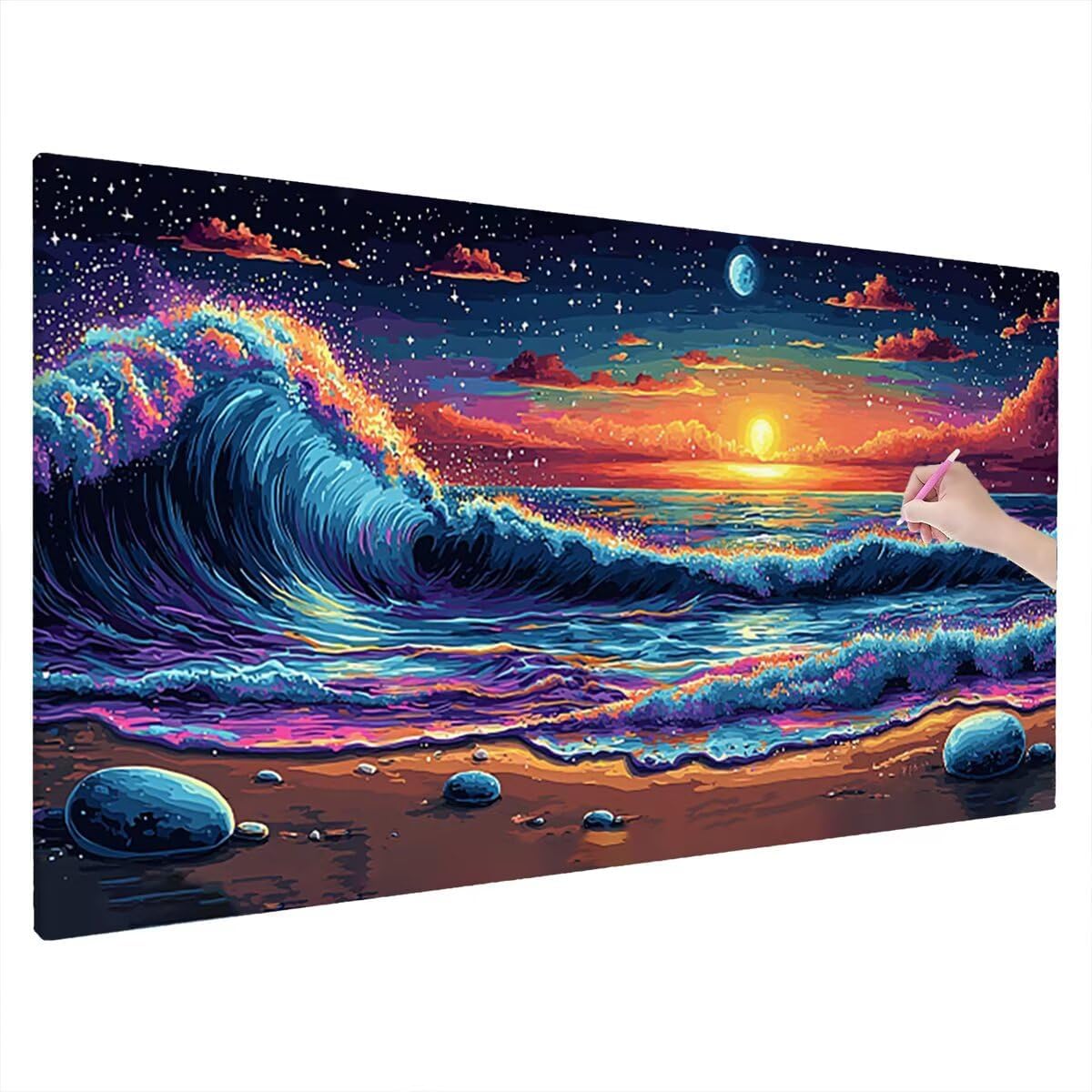 Set per dipingere con i numeri con uno splendido design colorato. La tela da 40 x 50 cm presenta un bellissimo dipinto in tonalità affascinanti. Questo kit di pittura acrilica fai da te è perfetto per principianti e artisti esperti e offre un potenziale creativo terapeutico, aiutandoti a creare un'opera d'arte da parete sofisticata. Lo stile contemporaneo dell'acquerello aggiunge un tocco moderno al classico concetto di pittura con i numeri, rendendolo un regalo ideale per gli amanti dell'arte e del fai da te. Ogni kit contiene tutto il necessario per ricreare questa incantevole opera d'arte e provare la gioia di dare vita a questa vivace opera d'arte. Si noti che questo set include una cornice di legno che può essere assemblata. Questo ti dà una scelta più conveniente. Il telaio combinato può essere fissato agli angoli con una graffetta. Tutti e quattro gli angoli sono necessari, molto stabili.
