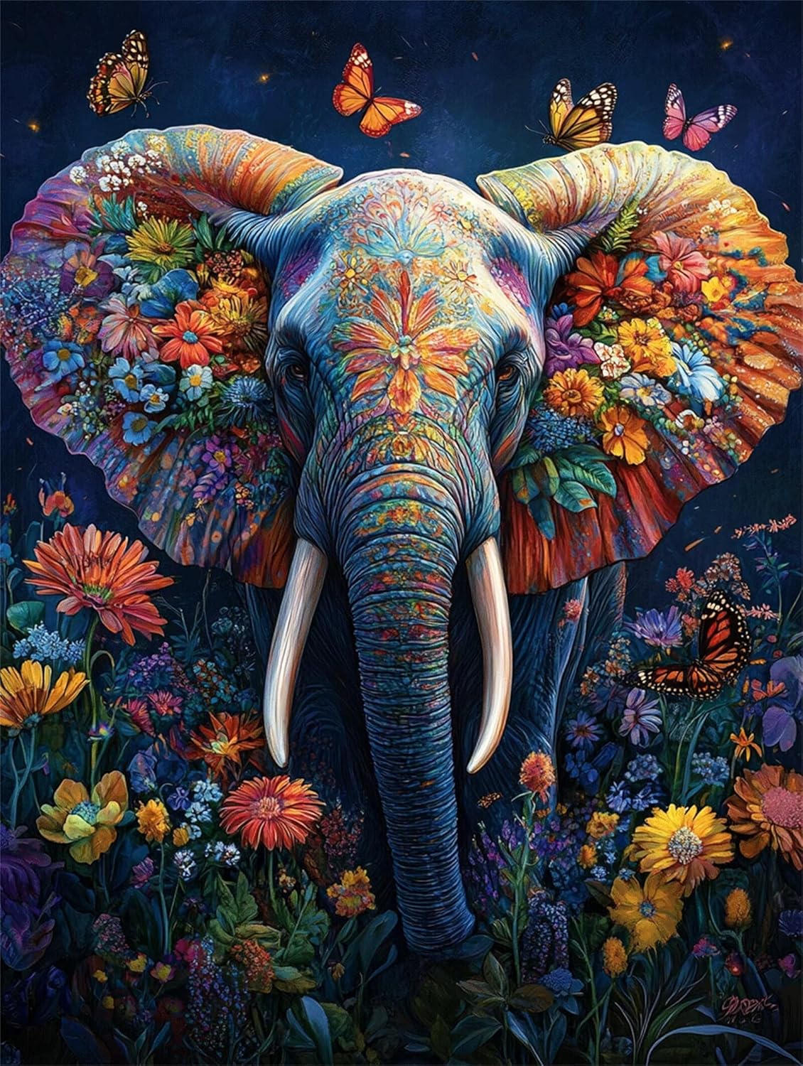 Dipingere con i Numeri Animale Dipingi con i Numeri Adulti Elefante Quadri da Dipingere con Numerati, Fai Da Te Creativo Adulti Kit di Pittura su Tela Colorata Prestampata, Regalo Donna 60x80cm Q-824
