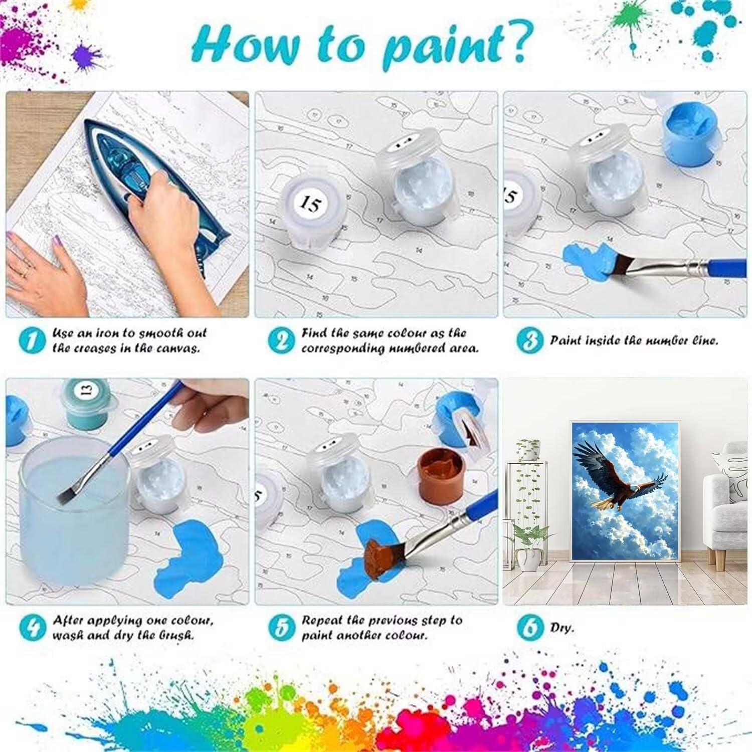 Dipingere con i Numeri Aquila Animale, Paint by Numbers Adulti e Bambini, Kit Pittura a Olio su Tela Fai-da-Te, con 3 Pennelli e Vernice Acrilica, Kit per Tela Antipiega 30x40cm (Senza Cornice) w-717