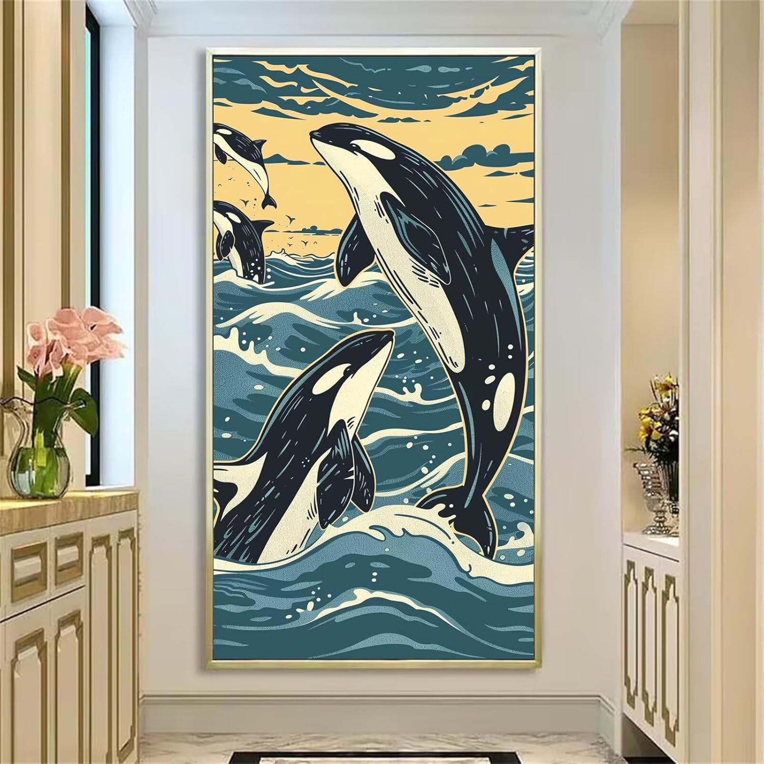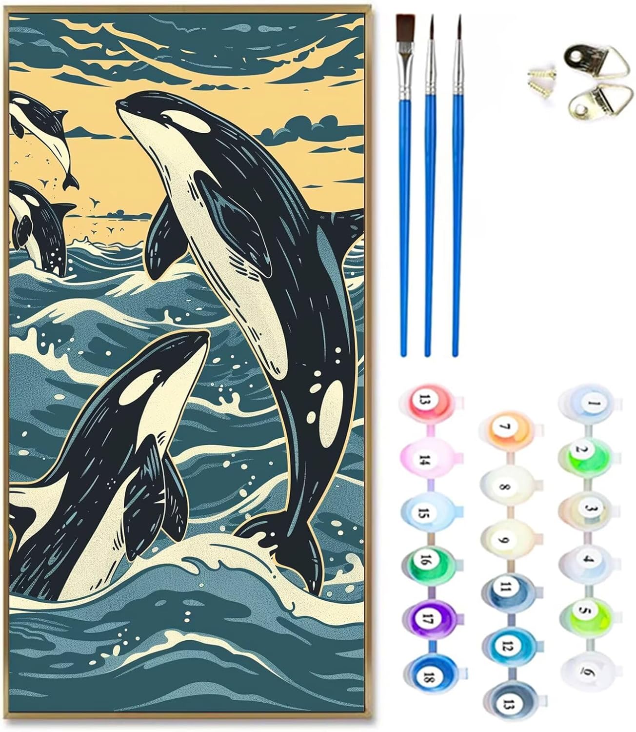 Dipingere Con i Numeri Bambini balena, animale Quadri da Dipingere Numerati, Paint by Numbers Kit di Pittura su Tela per Principianti, Numeri per con Vernici 3 pennelli, Home Room Decor 30x60cm H-725