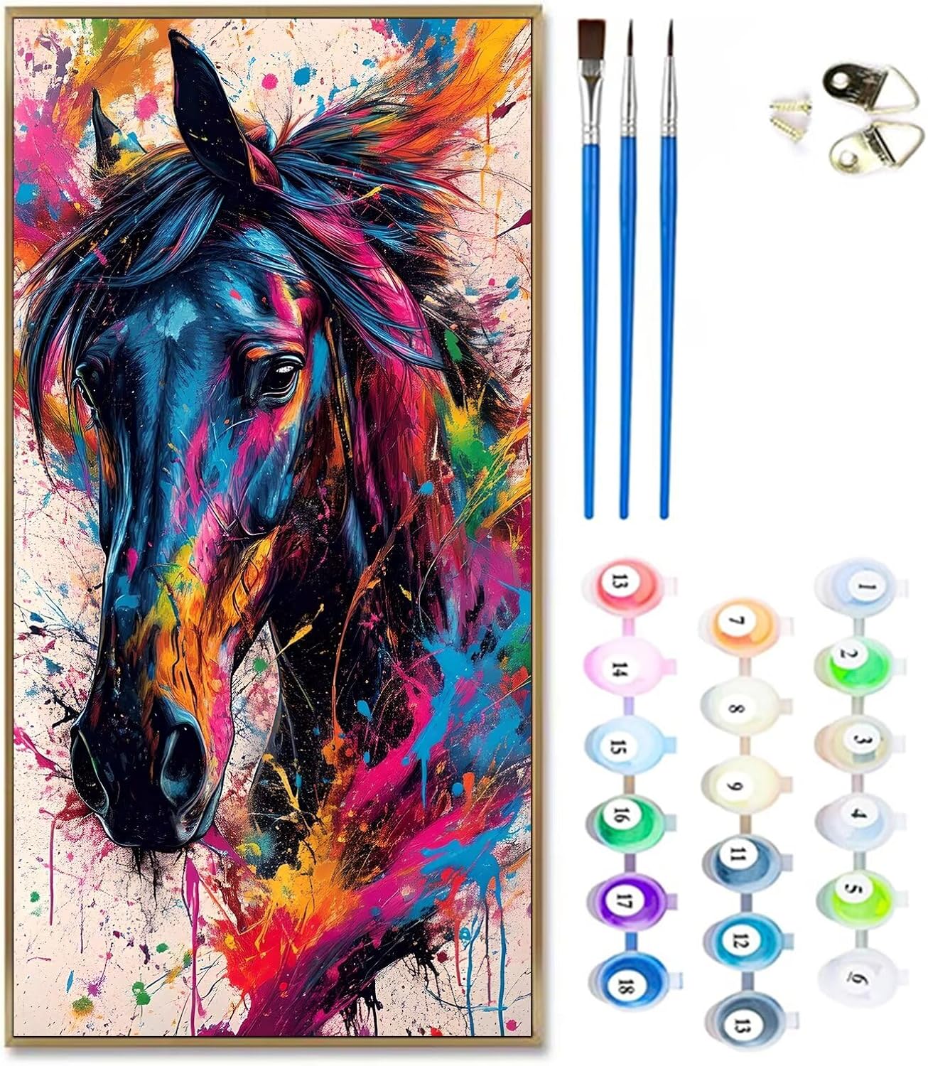 Dipingere Con i Numeri Bambini colore, cavallo Quadri da Dipingere Numerati, Paint by Numbers Kit di Pittura su Tela per Principianti, Numeri per con Vernici 3 pennelli, Home Room Decor 70x140cm H-527