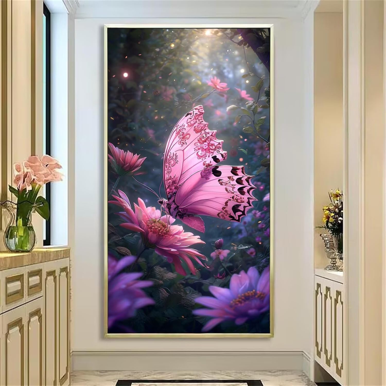 Dipingere Con i Numeri Bambini Farfalla, fiore Quadri da Dipingere Numerati, Paint by Numbers Kit di Pittura su Tela per Principianti, Numeri per con Vernici 3 pennelli, Home Room Decor 30x60cm H-679