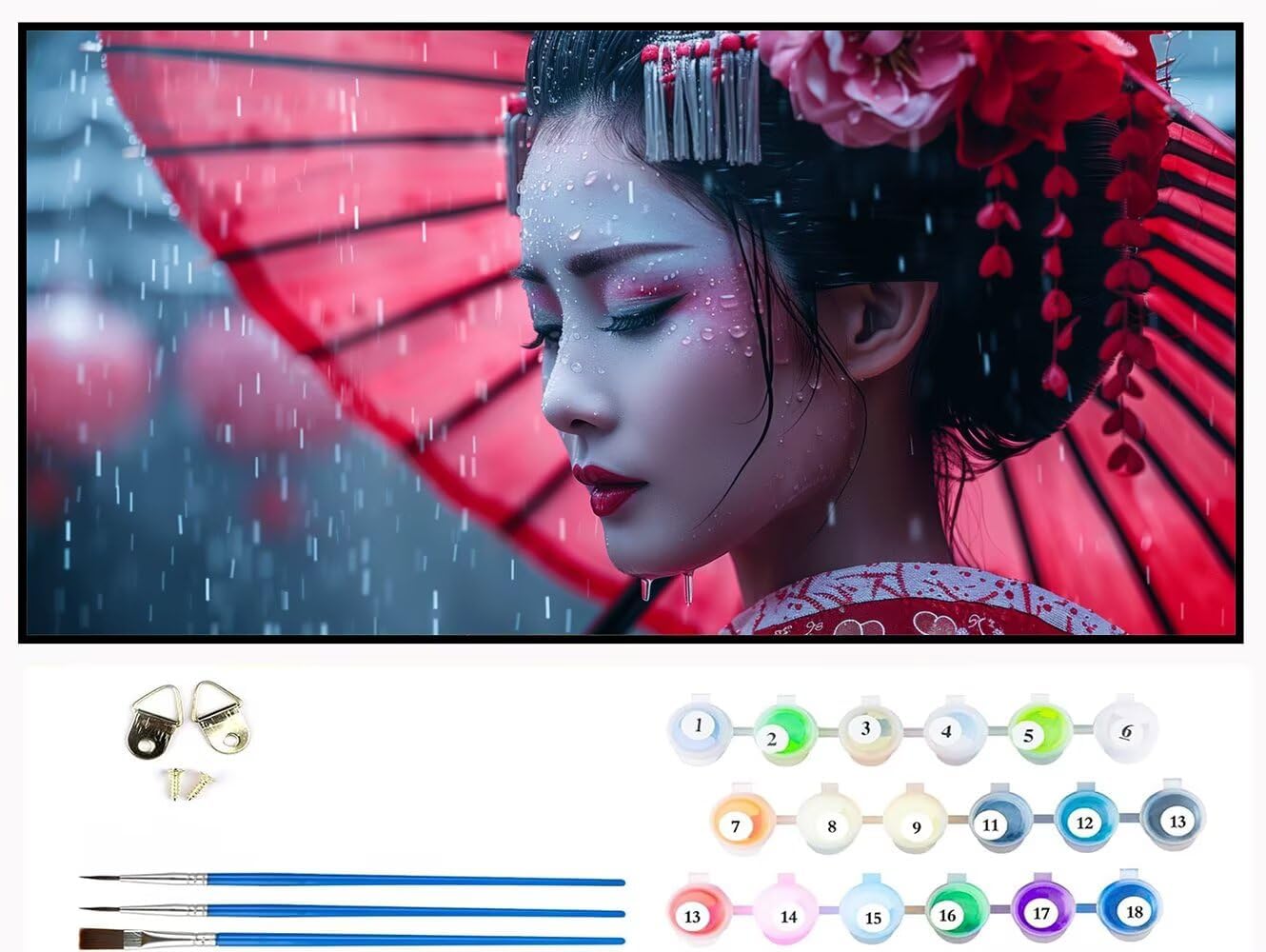 Dipingere Con i Numeri Bambini Giappone, Diva Quadri da Dipingere Numerati,Paint by Numbers Kit di Pittura su Tela per Principianti, Numeri per con Vernici e 3 pennelli,Home Room Decor 40x80cm H-359