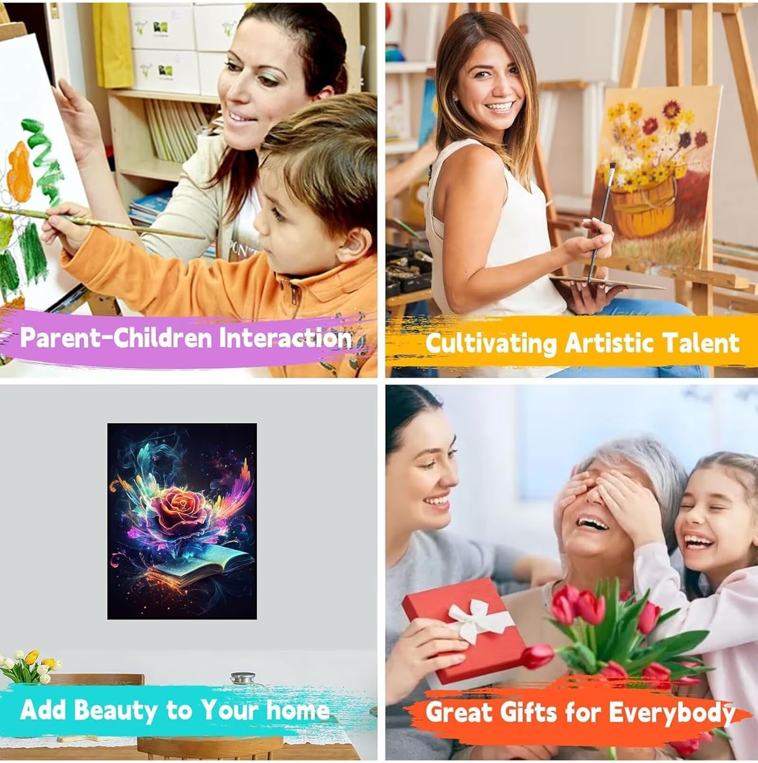 【DIPINGERE CON I NUMERI】:Include una tela (con frame), 3 pennelli da pittura, 1 set di colori di pigmento acrilico e un campione di immagine. Siamo pronti per tutto, aspettando solo che tu dipingi la pittura su tela. 【MATERIALI DI ALTA QUALITÀ】:Realizzato con vernici acriliche di alta qualità e resistenti alla sbiadida e tela spessa e strutturata, questo kit garantisce colori vibranti e opere d'arte di lunga durata. Materiali Superiore lo rendono sicuro per bambini e adulti. La tela in cotone puro, ha buon assorbimento d'acqua e capacità di respirazione, facile da conservare per un lungo periodo di tempo. 【FACILE DA DIPINGERE】:Design senza stress per tutte le età: grandi zone numerate, vernici ad asciugatura rapida e una tela leggera che rimane piatta durante il lavoro. Include istruzioni dettagliate passo dopo passo con aiuti visivi per un progresso semplice. 【REGALI PERFETTI】:Un regalo pensato per compleanni, vacanze o vari giorni di commemorazione. Viene elegantemente scatolato con un design pronto per regali. Ideale per gli amanti dell'arte, gli appassionati di fai da te o chiunque cerchi relax. I pezzi finiti possono essere incorniciati per splendidi arredi domestici! 【SERVIZIO POST-VENDITA】:Godetevi un supporto senza preoccupazioni con il nostro team di assistenza clienti dedicato. Se incontri problemi con il tuo kit, sia che mancano pezzi o preoccupazioni di qualità, contattaci, risolveremo attivamente per te. La tua soddisfazione è la nostra priorità!